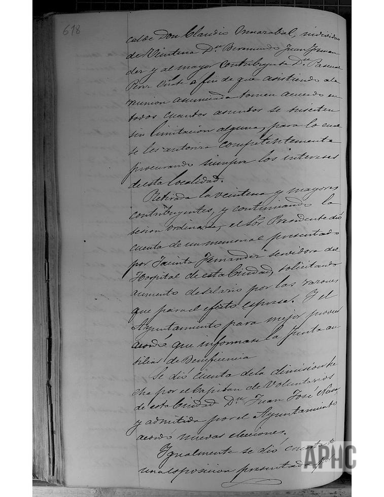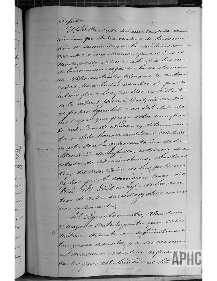 (Sesión con miembros de Veintena y Mayores contribuyentes) Recibida convocatoria de la Comisión de Suministros de la Merindad, para reunión en Tudela, para tratar sobre la Guerra Civil y solicitar al Ejecutivo ayuda sobre las cargas que están soportando una parte reducida de Navarra y tratar si debe realizarse aislada por parte de esta Merindad o colectivamente con la Merindad de Tafalla (Merindad de Olite), tratar sobre el estado de la administración y otros diversos asunto; se acuerda nombra Comisión compuesta por el Alcalde Claudio Ormazábal, Beremundo Juan Fernández por parte de Veintena y Pascual Pérez Oñate por Mayores contribuyentes, para acordar los asuntos que se susciten, procurando siempre lo mejor para los intereses de esta localidad. (Se retiran Veintena y Mayores Contribuyentes, continuando la sesión ordinaria). Solicitud de Jacinta Fernández, Servidora del Hospital, de un aumento de sueldo, por las razones que expresa y se acuerda remitir a la Junta de Beneficencia. Presentación de dimisión del Capitán de Voluntarios de esta Ciudad, Juan José Nieva, se admite y se acuerda nuevas elecciones. Solicitud de Diego López de Montenegro y otros miembros de la Sociedad Filarmónica, de anticipo de 5.500 reales, para compra de instrumentos; ante el precario estado económico del Ayuntamiento, se contesta no puede accederse a este petición, pero que una vez constituida dicha Sociedad, se tendría en cuenta la subvención acordada anteriormente para estos casos.