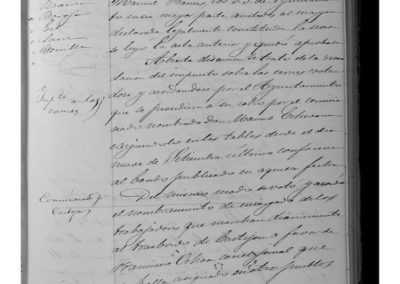 Se acuerda se proceda al cobro del impuesto sobre la carne, por el comisionado Manuel Echevarne, exigiéndolo desde el día 9 de septiembre último. Se nombra encargado de los trabajadores que marchan diariamente al trasbordo de Castejón, a favor de Francisco Ochoa, con el jornal asignado para estos casos. Se acuerda citar a todos los elaboradores de chocolate y venta de azúcar y canela, para arreglar el impuesto establecido sobre dichos artículos, toda vez que no hubo postor para su arrendamiento.