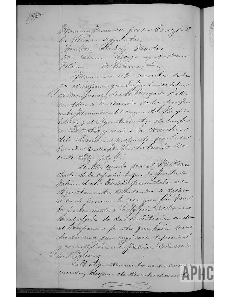 Se acuerda realizar gestiones en el Juzgado de 1ª Instancia de Tudela, para conseguir copia de la carta que Antonio Sánchez de Luna, desde Buenos Aires, dirige a esta Ayuntamiento, para que se inserte en este libro de actas. Para revisión de cuentas de propios del año 1874, se nombran, mediante sorteo, a los siguientes Mayores contribuyentes: Lucio Elorga, Bonifacio Indave, Manuel Jiménez Ayala, José Andrés Fuertes, Dionisio Viscasillas y Matías Catalán Sanz. Para revisión de las cuentas de 1872 y 1873, de igual modo, resultaron elegidos: Joaquín Díez de Ulzurrun, Pascual Pérez Oñate, que se hallan ausentes de la Ciudad y Francisco Fernández, por ser Concejal y los Sres. José Andrés Fuertes, Lucio Elorga y Feliciano Navarro. La Junta de Beneficencia, presenta informe sobre la presentación de la dimisión de la Hospitalera Jacinta Fernández; el Ayuntamiento acordó dicha dimisión, declarando dicho cargo vacante. La Junta de Fábrica de la Ciudad, solicita se dejase a su disposición la vivienda que fue Fuerte, perteneciente a la Iglesia del Rosario, con el objeto de dar vivienda al Campanero, puesto que había variado su uso y cuya casa dependía y correspondía a la Fábrica de la misma Iglesia. El Ayuntamiento, teniendo en cuenta que allí vive el Alguacil Calixto Sobejano, acordó que los tenientes alcaldes giren visita a dicha casa y vean si es posible disponer de dos viviendas, para resolver lo conveniente.
