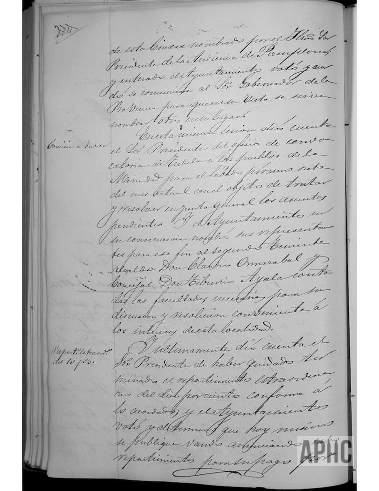 Se informa de la dimisión presentada por el Concejal José Gil, por haber sido nombrado Juez Municipal, por el Presidente de la Audiencia de Pamplona; el Ayuntamiento se da por enterado y acuerda se comunicase al Gobernador de la Provincia, para que nombrase a otro concejal. Ante la convocatoria de sesión de Tudela a los pueblos de la Merindad para tratar asuntos pendientes, se comisiona al Teniente alcalde Claudio Ormazábal y al Concejal Tiburcio Ayala, con todas las facultades necesarias para su asistencia. El Alcalde-Presidente informa de que está preparado el impuesto extraordinario del 10%, conforme se acordó en sesión del 15 de julio último y se acuerda que hoy mismo se publique bando anunciando dicha imposición, para su pago en término de 8 días.