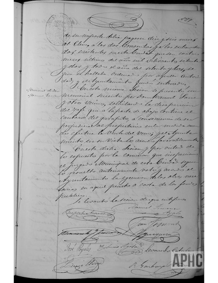 Se informa de oficio del comisionado de la Diputación, José Remón, reclamando la deuda que debe el Ayuntamiento y que, con parte de su importe, debía pagarse 16 meses al Clero, a los dos Conventos y a los enclaustrados existentes en esta Ciudad, que son 4 meses últimos de 1872 y todo el año 1873, según se había ordenado por dicha Autoridad y el Ayuntamiento quedó enterado. Se informa de escrito de Manuel Sanz y otros vecinos, solicitando la desaparición del rafe del cántaro del garapito, a consecuencia de ser perjudicial al propietario en la medida cuando realiza la venta de vino; y el Ayuntamiento accedió a lo solicitado. Visto el informe de los comisionados para inspeccionar las posibles reformas en las oficinas del Juzgado Municipal, se acuerda la realización de las mismas con cargo a los fondos municipales.