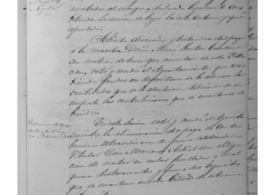 Con motivo de ausentarse de esta Ciudad, la Maestra María Santos Caballero, se acuerda se le abonen las cantidades que se le adeudan, deduciendo de su importe las contribuciones pendientes. Se acuerda la exención del pago de contribuciones extraordinarias de guerra al Médico titular Mariano Arbial, con la obligación de visitar a cualquier destacamento o fuerza del Ejército, que se encuentre en esta Ciudad de estancia o tránsito. Se acuerda fijar la patente sobre el regaliz, fijándola en 1.500 reales anuales, con prohibición a los vecinos de vender ese artículo a personas en comisión fuera de esta localidad, castigando al infractor con el rigor de la ley.