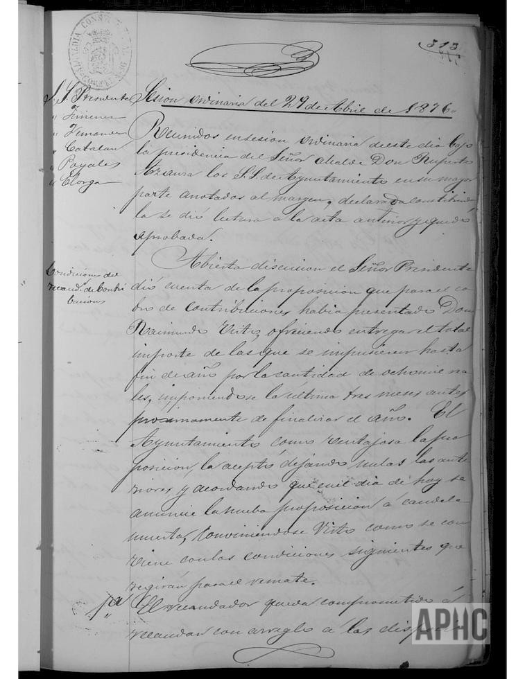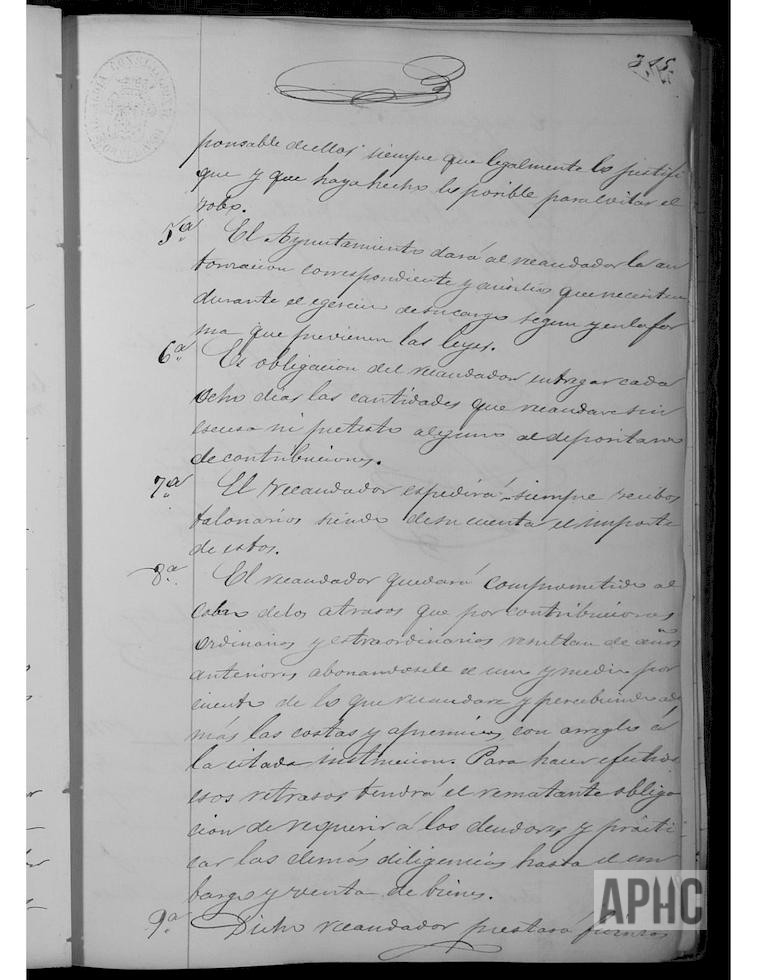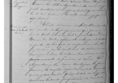 Ante la presentación de una oferta más ventajosa de Raimundo Virto, para el cobro de las contribuciones del presente año, se acuerda anular la anterior proposición, anunciar una nueva proposición a candela muerta, conviniendo varias disposiciones para dicho contrato.
