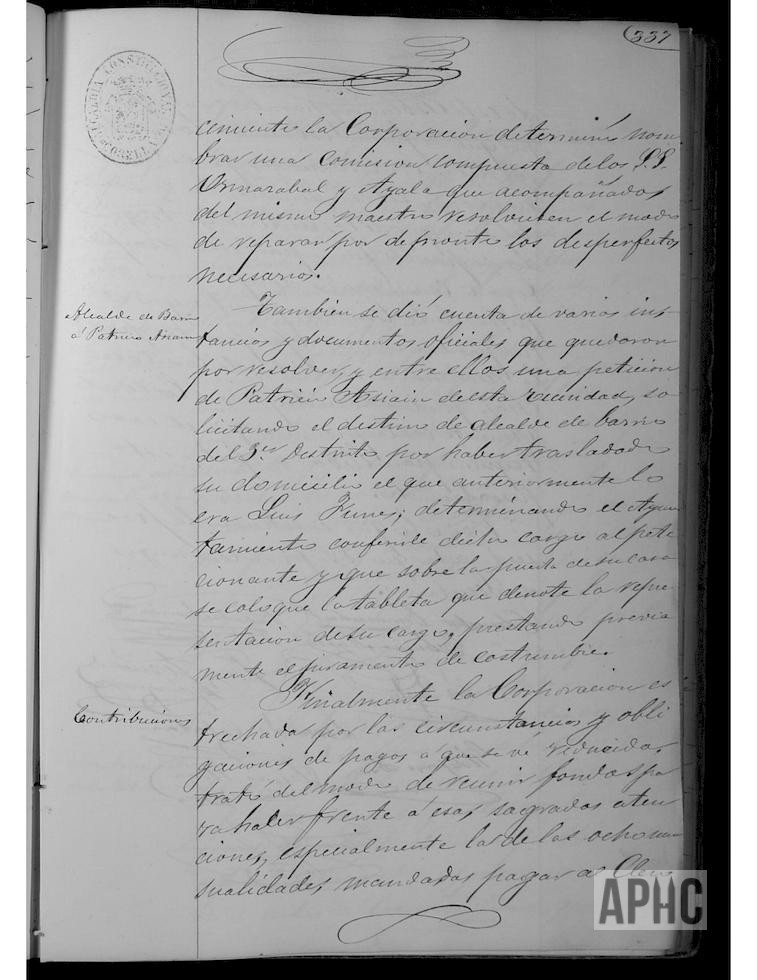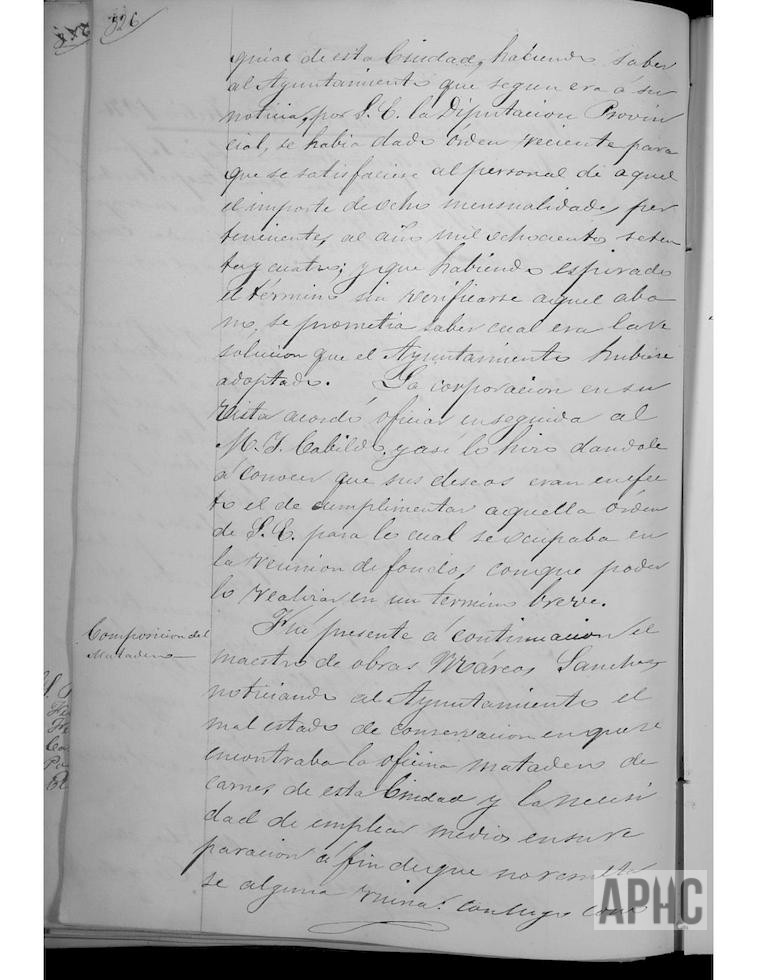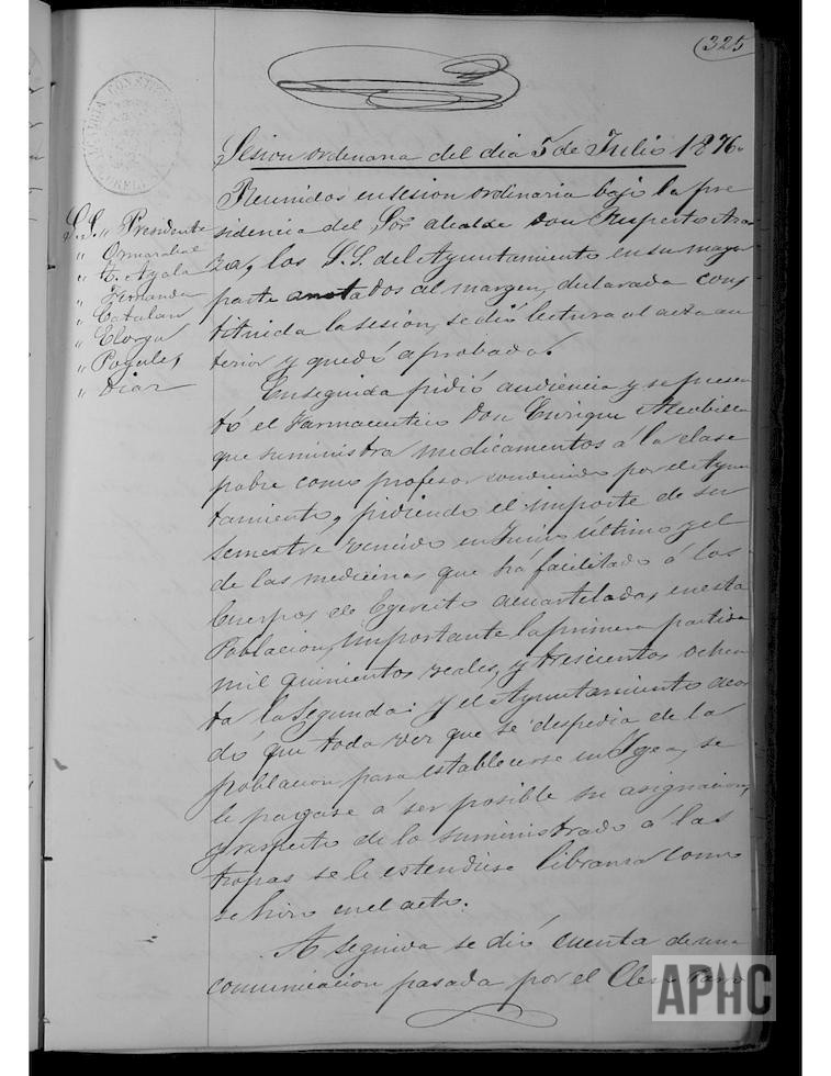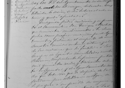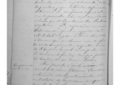 El Farmacéutico Enrique Alcobilla solicita el abono de su asignación semestral y el importe de las medicinas suministradas a clase pobre de la Ciudad y de las suministradas a los Cuerpos de Ejército acuarteladas en la Ciudad, por importes de 1.500 y 300 reales respectivamente y dado el caso de que el Sr. Alcobilla se despedía para establecerse en la localidad de Igea (Logroño), se acordó el abono de su asignación y extender un libramiento por importe de las medicinas suministradas. Se trata de escrito presentado por el Clero Parroquial de la Ciudad, manifestando sus noticias de que la Diputación había ordenado recientemente, se pagase a dicho Clero, el importe de 8 mensualidades, correspondientes al año 1874 y que habiendo finalizado dicho plazo requería contestación sobre la resolución adoptada; el Ayuntamiento contestó al Cabildo que la intención era abonar de inmediato a cuyo efecto se ocupaba de la reunión de fondos, para realizar dicho abono. El Maestro de obras Marcos Sánchez, informa del mal estado de conservación del Matadero Municipal, siendo preciso proceder a su reparación para evitar su ruina; se nombra comisión formada por dicho Maestro de Obras y los Sres. Ormazábal y Ayala, para estudiar la forma de acometer las obras de modo urgente. Solicitud de Patricio Asiain para nombramiento de Alcalde de Barrio del distrito 3º, por haber cambiado de domicilio y se Acuerda dicho nombramiento, ordenando la colocación, en la puerta de su casa, de la tableta que denote la representación de su cargo. Se trata sobre el cobro de deudores morosos y la posibilidad de traer de fuera de la Ciudad, recaudador de apremios, considerándose ahora momento oportuno por ser tiempo de cosechas.