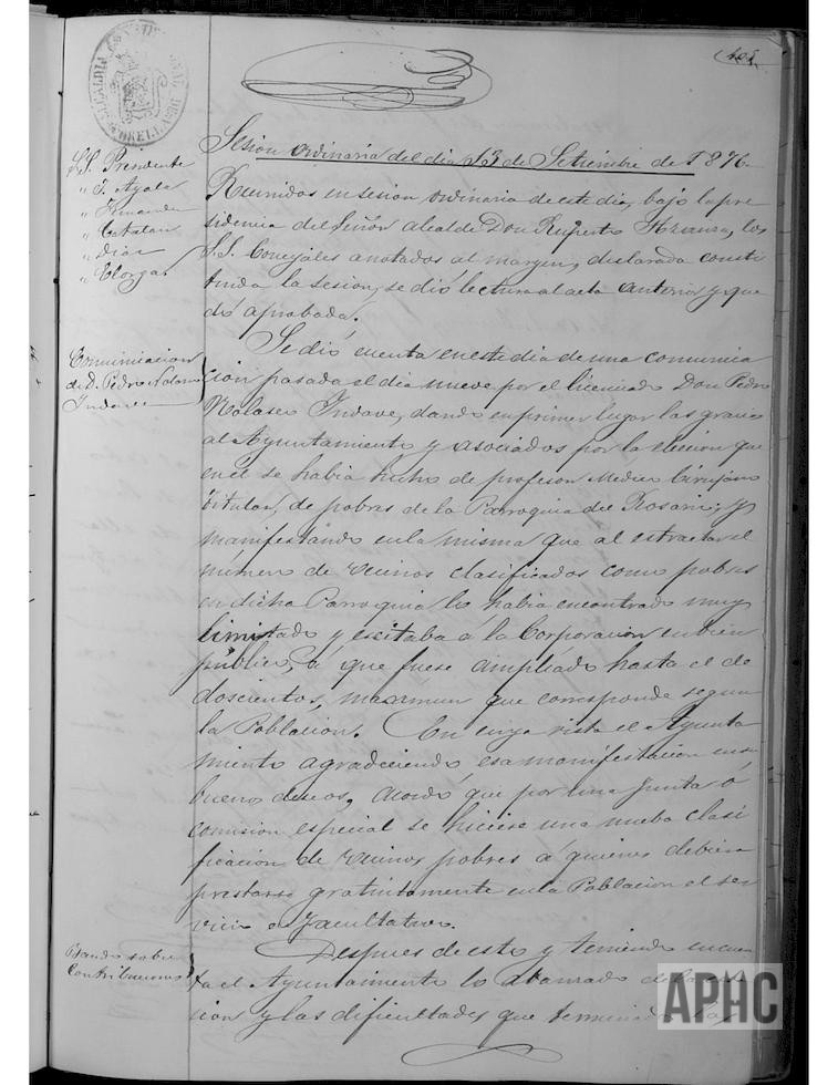 Se informa de escrito presentado por Pedro Nolasco Indave, agradeciendo a la Corporación y miembros de la Junta Municipal su elección de Médico Cirujano titular de pobres de la Parroquia de Ntra. Sra. del Rosario, manifestando que al comprobar la lista de pobres de dicha Parroquia, la consideraba muy escaso su número, solicitando que su número se elevase a 200 pobres, máximo que corresponde según la población. El Ayuntamiento acuerda el nombramiento de una Junta o Comisión, para realizar una nueva clasificación de vecinos pobres a los que habría de prestarse gratuitamente la asistencia facultativa. En vista de lo avanzado del fruto de la uva, próxima a su recolección, se acuerda la publicación de bando, recordando a los vecinos la prohibición de levantar sus cosechas sin haber obtenido del recaudador, la papeleta de estar al día en el pago de las contribuciones, cuidando y vigilando respecto de este servicio los Guardas Municipales. Se hace comparecer en el salón de sesiones al cabo de guardas Prudencio Gómez, notificándole la anterior decisión y se le autoriza la contratación temporal de tres guardas más, para la vigilancia y custodia de los campos.