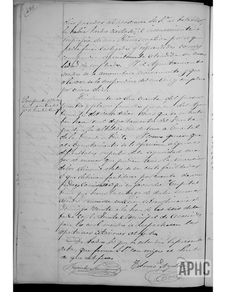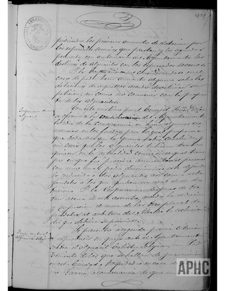 Se informa de escritos de los Serenos Manuel Barenas, Celedonio Hernández y Polonio González y los Alguaciles Calixto Sobejano, Mariano Mateo e Hilario Garbayo, en solicitud de los Serenos de aumento de sueldo y los Alguaciles permiso para permutar su destino de Alguaciles con la de Serenos. El Ayuntamiento acuerdo desestimar ambas peticiones. A proposición del Concejal Sr. Díaz y por los motivos expuestos, se acuerda suprimir una plaza de Alguacil, dejando a voluntad del Sr. Alcalde la decisión del miembro a excluir. Se sanciona al Alguacil Calixto Sobejano con 5 días de suspensión de empleo y sueldo, por una falta cometida. A la vista del presupuesto para habilitación del Fuerte de la arboleda del Carmen, para vivienda de los miembros de la Guardia Civil, se acuerda celebrar una sesión con la Junta Municipal de Asociados.