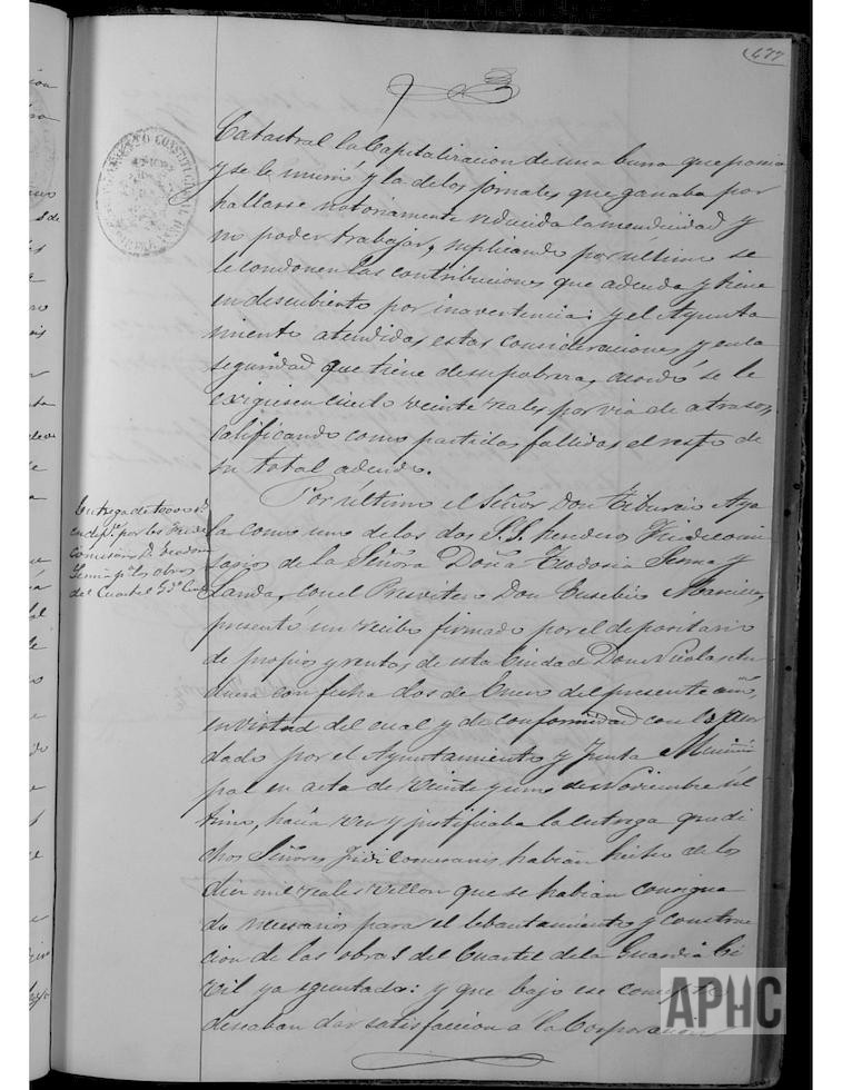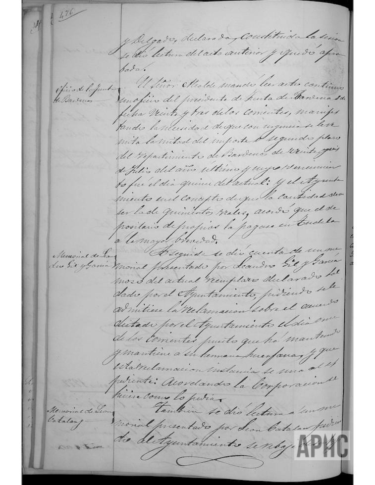 Se informa de oficio del Presidente de la Junta de Bardenas, reclamando el pago del segundo plazo de la imposición de fecha 26 de julio del pasado año; el Ayuntamiento acuerda se abone por el Depositario de Propios entregase la cantidad de 500 reales a que asciende dicha cantidad, en Tudela. Se informa de escrito de Leandro Gil García, mozo del actual reemplazo declarado soldado por el Ayuntamiento pidiendo se le admitiese la reclamación en función del acuerdo del Ayuntamiento, puesto que ha mantenido y mantiene a su hermana huérfana y que este escrito se una a su expediente; la Corporación acuerda se hiciese conforme se solicita. Escrito de León Catalán, solicitando la baja de su hoja catastral de una burra que poseía y se murió y la condonación de las deudas por contribuciones, ya que no puede trabajar; el Ayuntamiento teniendo en consideración su situación de pobreza, acuerda se le exijan sólo la cantidad de 120 reales por concepto de atrasos, calificando como partidas fallidas el resto de la deuda. Tiburcio Ayala, como uno de los dos herederos fideicomisarios de Teodosia Sesma Landa, con el presbítero Eusebio Marcilla, presentó un recibo firmado por el Depositario de Propios Nicolás Andueza, con fecha 2 de enero del presente año, confirmado la entrega que se le hizo en dicha fecha de los 10.000 reales, según se acordó por el Ayuntamiento y la Junta Municipal, para financiar las obras de habilitación de cuartel para la Guardia Civil; haciendo constar que la fecha para el devengo de los correspondientes intereses sea la fecha de 2 de enero en que se realizó dicha entrega.