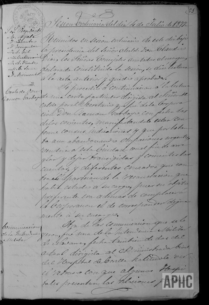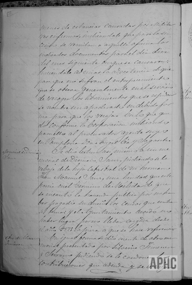 Carta de Ramón Garbayo Romeo, Secretario que fue del Ayuntamiento, anunciando que vendría a Corella, a ponerse a disposición de la corporación para cuantos asuntos estimaran pendientes y resolver conforme a la dignidad del cargo que ocupó. Comunicación de la Intendencia Militar, sobre gastos ocasionados por militares en el Hospital de Corella. Solicitud de Dionisio Sanz sobre rectificación en el Catastro de finca de su hermano Juan Manuel Sanz. Solicitud de Silverio Jiménez Serrano, sobre condonación de contribuciones que adeuda. Se acuerda denegar la solicitud. Solicitud de Pedro Sesma para que se le quite de Catastro viña que hace años vendió a Justo Liroz, en el término de el Montecillo. Solicitud de Doroteo Atienza, para que le condonen las contribuciones por el tiempo que ha estado avecindado en Valtierra. Convenio de arriendo de edificio del Ayuntamiento para cuartel de la Guardia Civil.