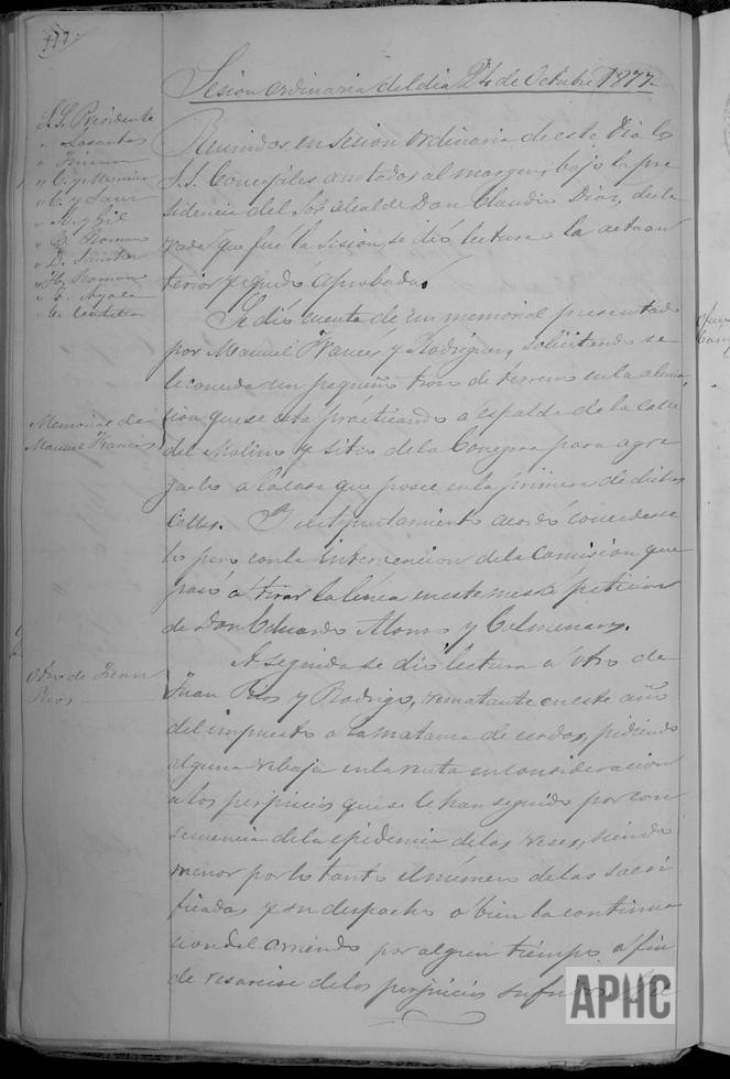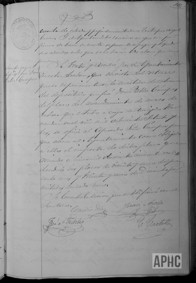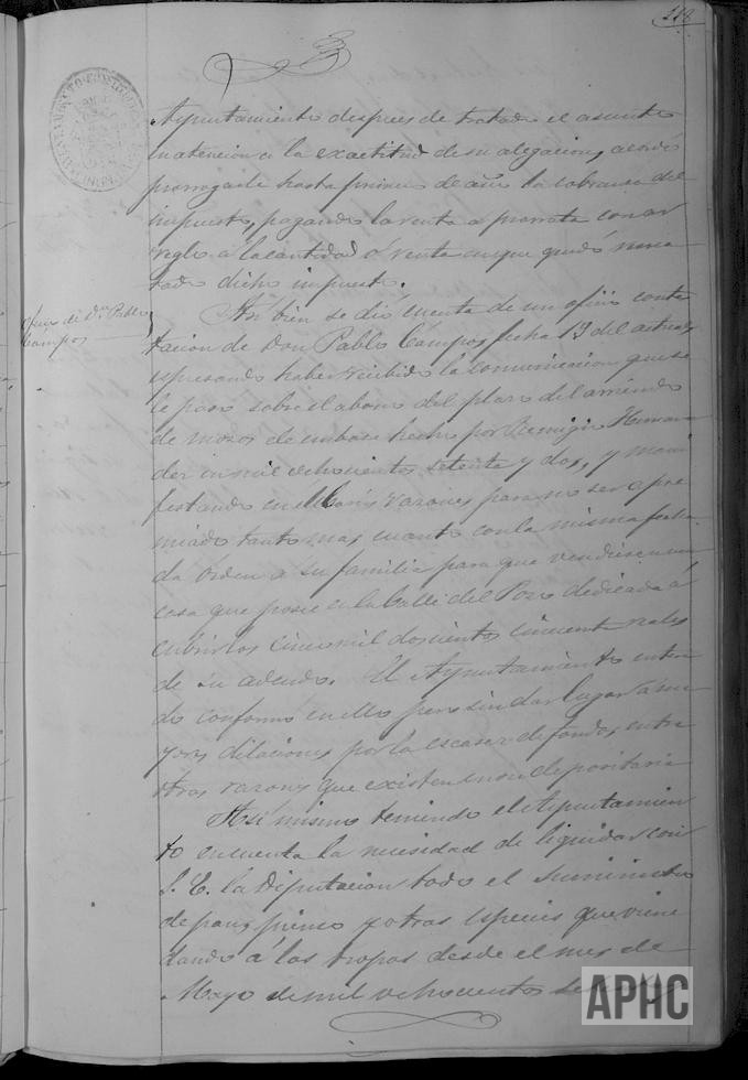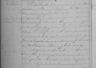 Manuel Francés Rodríguez, solicita un terreno entre calle del Molino y Conejera. El Ayuntamiento se lo concede con la dirección de la Comisión nombrada para ese asunto que afectaba también a Eduardo Alonso Colmenares. Juan Ríos Rodrigo, rematante del impuesto sobre matanza de cerdos, solicita rebaja en el impuesto, por la epidemia existente en dichos animales. Se accede en parte. Se requiere a Eduardo Campos el abono de la cantidad de su arrendamiento. Se nombra Comisión a Pamplona para negociar con la Diputación el pago a los soldados de reemplazo y restablecer el impuesto sobre el pan.