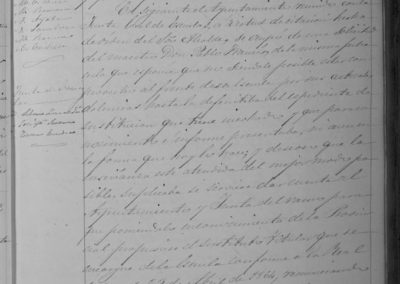 Escrito del Maestro Pablo Francés sobre imposibilidad de atender su escuela, por sus actuales dolencias, hasta resolución de expediente de sustitución. Sobre demolición de Galería o paso cubierto en el Barrio de Castejón.