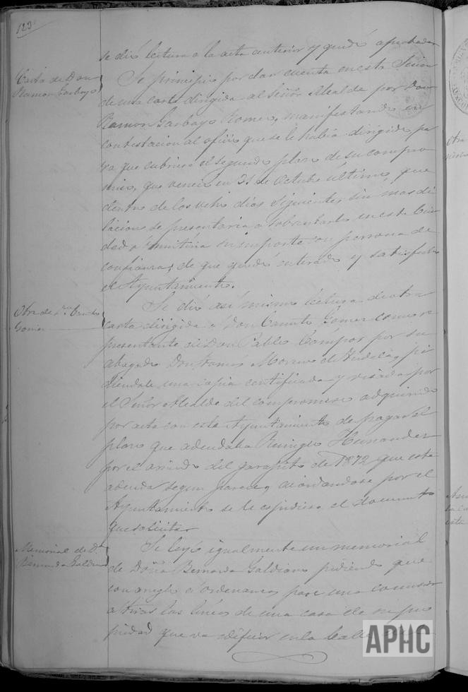 Escrito de Ramón Garbayo Romeo, secretario que fue del Ayuntamiento, indicando que en breves fechas abonaría el segundo pago a que se comprometió. Solicitud de autorización de Bernarda Galdiano, para construir en calle Barranquillo. Se encomienda informe al Maestro de Obras. Noticias de la Diputación a solicitud de construcción de ramal de la carretera de Grábalos por el Ombatillo.