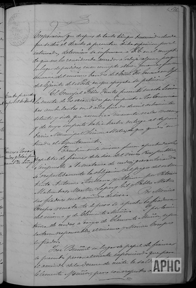 Solicitud de Juan López, zapatero, de que se le descuente de su hoja catastral dicha industria. Se accede en parte. El Concejal José A. Fuertes, presenta cuentas de la recaudación a los comerciantes ambulantes, entregando dicho importe al Depositario Simón Mateo. Sobre fianzas de los distintos arrendadora de los impuestos. Actos a celebrar y repartos extraordinarios municipales al vecindario, con motivo de la boda el próximo día 23, del Rey Alfonso XII con la Infanta Mª Mercedes de Orleans y Borbón.