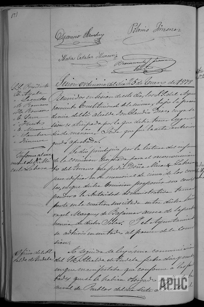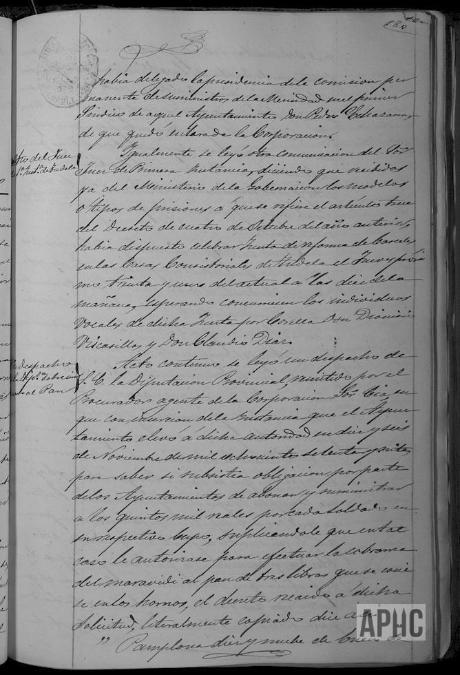 Informe de la Comisión sobre la solicitud de Micaela Lahera, sobre cierre de terreno de su propiedad en pasaje llamado del Terrero, a espaldas de su casa. Existen dudas sobre su pertenencia entre Micaela y el Marqués de Bajamar. Oficio del Juez de 1ª Instancia de Tudela, sobre reunión con motivo de las cárceles, se nombra Comisión para su asistencia a la misma en Tudela. Resolución de la Diputación sobre exigir el impuesto sobre el pan y obligación de pagar mil reales a cada soldado que sirva en el Ejército activo. Se eleva nueva consulta a Diputación sobre dudas existentes, en cuanto al pago en lo sucesivo a los soldados que ingresen en quintas. Sobre llegada de dos padres de la Orden del Corazón de María, para dar misiones.