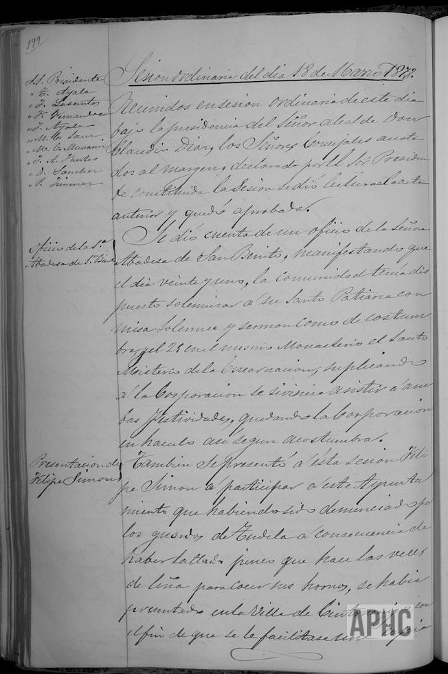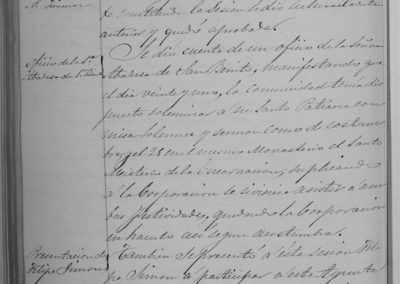 Oficio de la Abadesa de San Benito, solicitando a la Corporación su asistencia a celebración religiosa. Se acudirá.