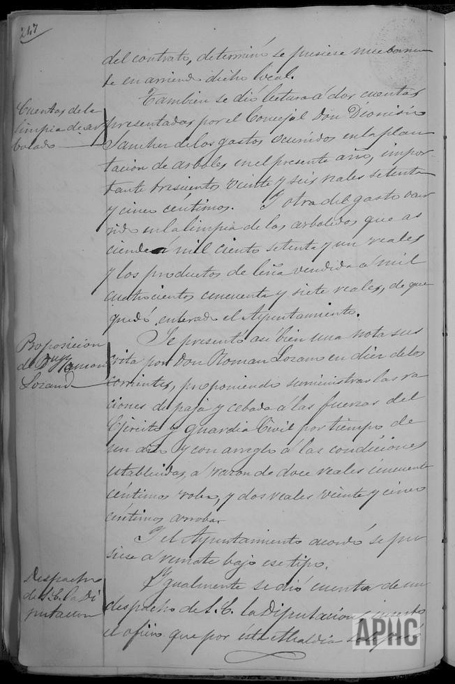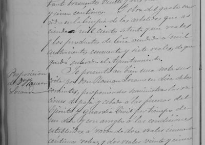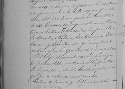 Presentación de cuentas de plantación de arbolado, limpieza de montes y venta de leña. Presentación de propuesta de Miguel Serrano, Dionisio Viscasillas y demás vecinos, sobre conducción y encauzamiento de las aguas del río Duero (Desde Soria), para su aprovechamiento para el riego, en cuya realización están también interesadas, además de Corella, las poblaciones de Tudela, Alfaro, Cintruénigo, Fitero, Cervera y Aguilar del río Alhama.
