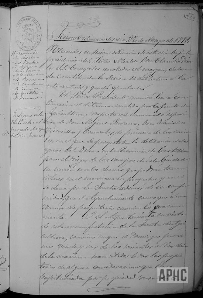 La Junta de Agricultura considera beneficioso el proyecto para utilización para el riego de las aguas del río Duero, con derivación desde la Provincia de Castilla.