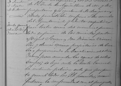 Se expone y delibera sobre el proyecto de canalización de las aguas del río Duero, se encuentra de total conformidad y se nombra una Comisión compuestas por representantes del Ayuntamiento, Junta de Agricultura y Propietarios, para tratar este proyecto con los representantes de las poblaciones interesadas.