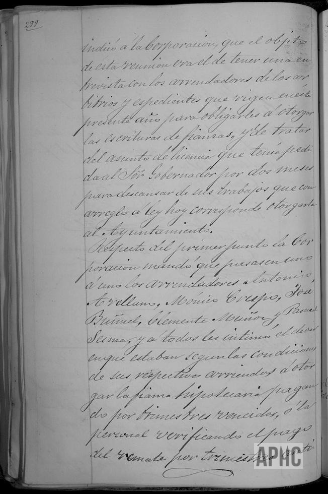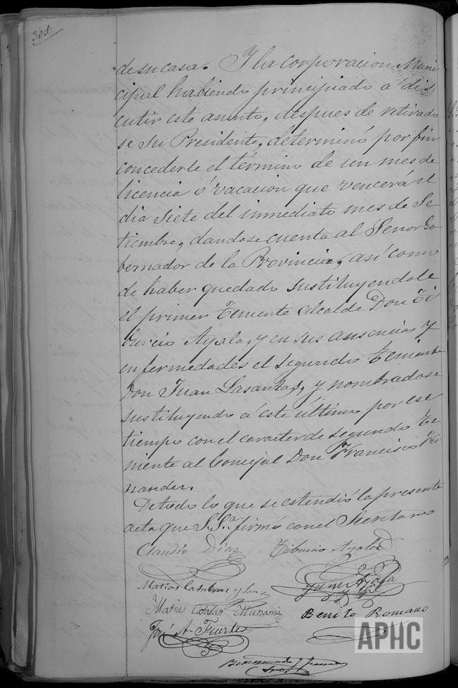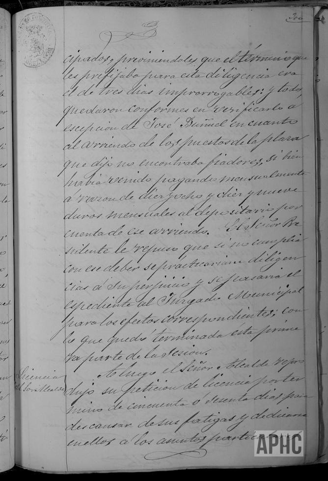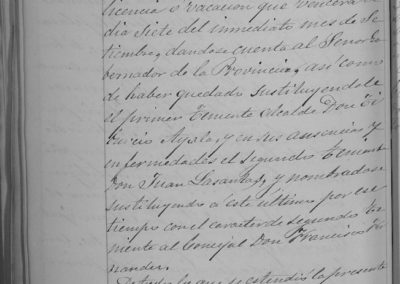 Informe sobre Arrendadores de Impuestos y sus fiadores. Solicitud y concesión de autorización al Alcalde Claudio Díaz, para ausentarse un mes, delegando sus funciones en el Primer Tte. de Alcalde Tiburcio Ayala y en sus ausencias el Segundo Tte. de Alcalde Juan Lasantas, pasando a ocupar el cargo de 2º Tte. Francisco Fernández.