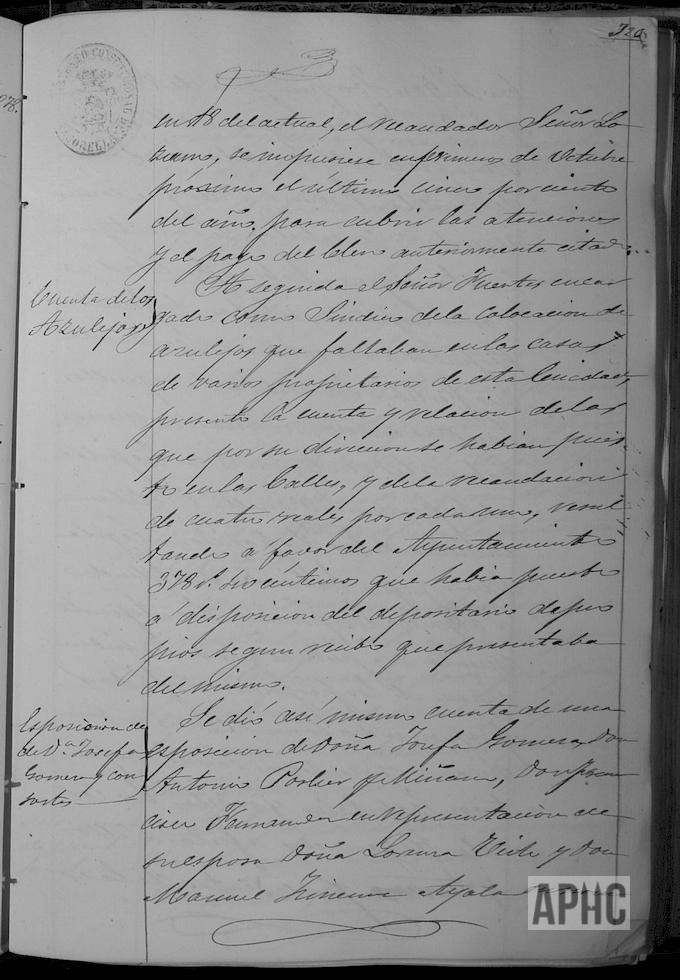 Sobre colocación de azulejos que faltaban en ciertas casas y su recaudación. Escrito presentado por Josefa Gómez, Antonio Porlier Miñano, Laura Virto, Joaquín Díez de Ulzurrun y Gregorio Moreno, vecino este último de Tudela, sobre su condición de acreedores de la antigua Mesta y no percepción de intereses, proponiendo como indemnización y reintegro de sus capitales y réditos los corrales de ganado afectos a ellos y terrenos procedentes de la expresada Mesta. El Ayuntamiento lo encuentra de conformidad, pero solicita autorización a la Diputación para poder llevarlo a cabo. Solicitud del Alcaide Andador Benito Díaz Sánchez de nuevo pantalón de paño negro para asistir a los actos oficiales. No se accede, por el momento, por escasez de fondos municipales.