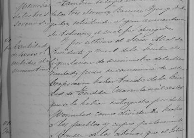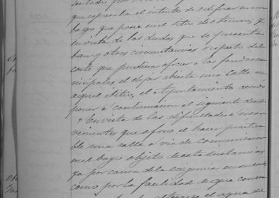 Oficio de la Diputación, a través del Celador de Caminos Martín Lasturain, sobre obligación de plantación de árboles en las carreteras de la jurisdicción de Corella, correspondiente plantar 274 en la carretera de Pamplona a Madrid, 1.700 en la de Tudela a Corella y 2.400 en la de Castejón a Cintruénigo, siendo un total de 4.374 los árboles que habían de plantarse por Corella. El Ayuntamiento queda enterado. Ante el informe de la Comisión de Ornato, sobre dificultades en edificación que proyectaba Bonifacio Indave, en el sitio del Terrero, como habría que habilitar una posible calle, se acuerda dejar en suspenso, de momento, esta autorización. (No acabo de situar el sitito del Terrero, ya que un Concejal expone que convendría disponer de comunicación por ese punto a los que se dirigen al Ombatillo o al Camino alto del Villar, ¿Podría tratarse de parte de la actual calle de Fitero o Avenida del Villar?). Solicitud de aumento de sueldo de los Serenos Barenas, Igea y Delgado. No se concede. Se reciben 40.000 reales por abono correspondiente a Corella de dividendos por anticipos de Guerra. Se acuerda la distribución entre los vecinos de un 5 por ciento de lo que cada uno haya satisfecho, como se hizo del 6 y del 15 por ciento, repartidos en este mismo año. Se ordena se publiquen bandos para conocimiento de los vecinos, requiriendo la presentación de los justificantes oportunos para recibir dicha cantidad.
