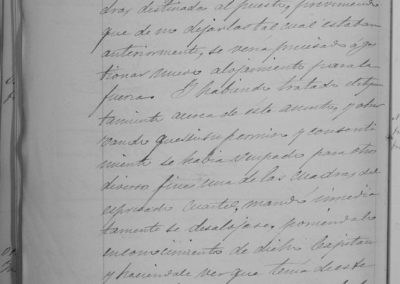 Oficio del Capitán de la Guardia Civil de Tudela, José Sancristóbal, sobre estrechez del alojamiento de los caballos del puesto de la Guardia Civil de Corella, que se había modificado sin conocimiento del Ayuntamiento. Se ordena vuelva a su estado primitivo y comunicarlo así al Capitán de la Guardia Civil de Tudela. Oficio del Alcalde de Cintruénigo, sobre reunión con una comisión para aclaración de algunos puntos del convenio sobre el aprovechamiento de las aguas del río Alhama. El Concejal Juan Ayala Gil, encargado del suministro de petróleo, da cuenta del consumo del mismo en el alumbrado público. (Desde el 12-05-1877 hasta 31-12-1878, habían sido 2.854 litros.)