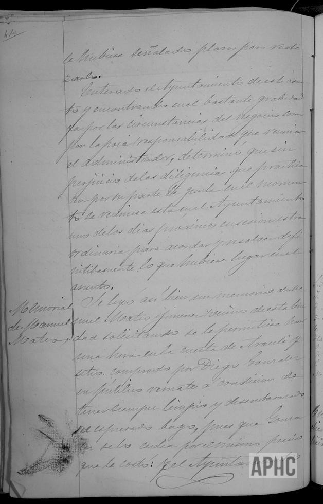 Comunicación de la Junta de Beneficencia sobre presentación de cuentas del Administrador del Hospital, Feliciano García, manifestando se le había indicado entregase su importe al Depositario, 6.579 reales, argumentado no estaba en disposición de poder realizarlo, a pesar de que la Junta le ofrece unos plazos para su entrega. El Ayuntamiento solicita una reunión urgente con la Junta de Beneficencia, para tratar este grave asunto. Escrito de Manuel Mateo, sobre terreno que le ha cedido Diego González, en la cuesta de Araceli y solicita se le permita hacer una era, comprometiéndose a tener el terreno limpio y desbrozado. Se accede con la condición de que el terreno esté siempre limpio.