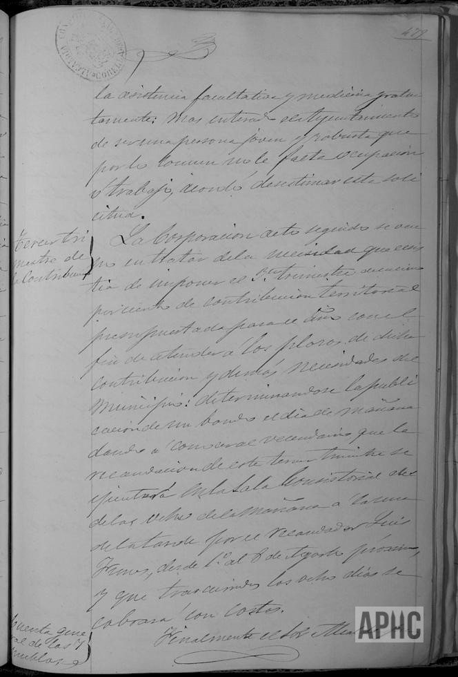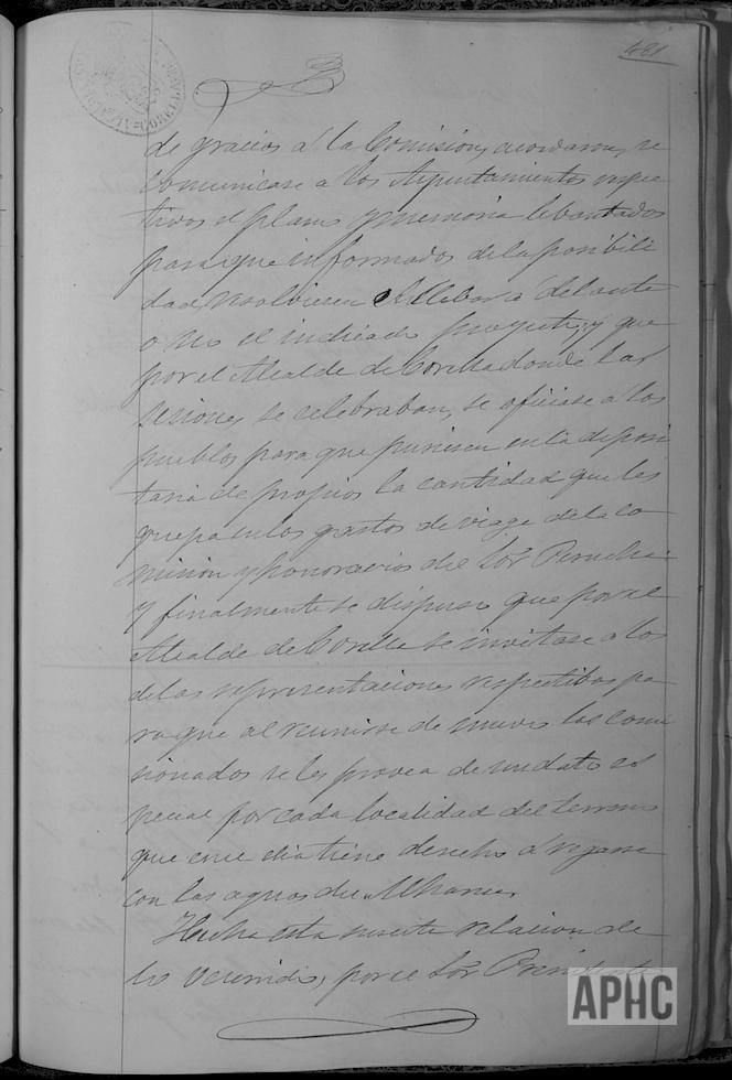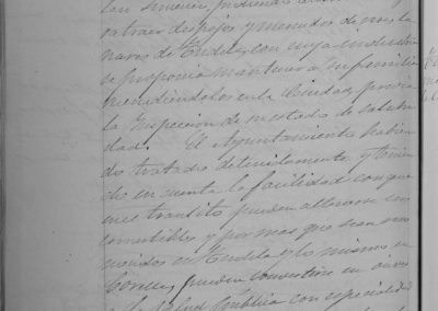 Solicitud de María Catalán Jiménez, para traer menudos de Tudela y venderlos en esta Ciudad, industria con la que se proponía mantener a su familia, aceptando las inspecciones oportunas. La Corporación no accede en vistas a la salud pública, especialmente en la estación del verano. La Comisión nombrada para el proyecto de traída de aguas del río Duero, informa sobre lo tratado con representantes de los pueblos interesados (Tudela, Alfaro, Cintruénigo, Fitero, Cervera y Aguilar, además de Corella), la visita girada a la población de Soria con el ayudante de obras Sr. Perucha, que informó que el proyecto para dicha ejecución, apertura de túneles, desmontes, expropiación de terrenos y canalización, tomándola desde el río Duero, ascendía a la cantidad de 15 millones de reales, aproximadamente. La corporación examina los planos y proyecto elaborados y toma en consideración varias medidas para ir concretando posiciones sobre el tema.