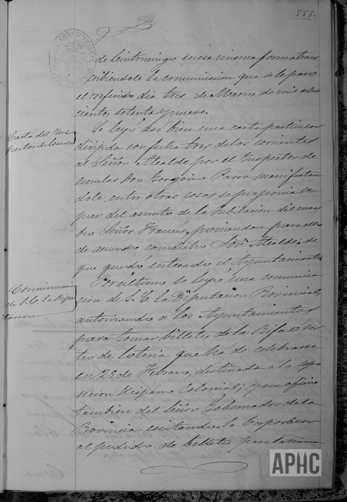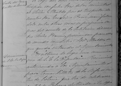 Se autoriza a Alejandro Jiménez García, para colocar puerta de taller en su casa de calle del Carmen. Oficio del Alcalde de Cintruénigo, reclamando cantidad por sostenimiento del río Llano, por riego de plantaciones de particulares. Se le contesta que se le comunicó en su momento que el pago reclamado debería pagarse por los particulares que regasen, nunca a cargo de fondos municipales. Escrito del Inspector de Escuelas Gregorio Parra, manifestando que se ocuparía del asunto de la jubilación del Maestro Pablo Francés. Escrito de la Diputación y del Gobernador sobre adquisición por parte de los Ayuntamientos de billetes de Lotería, con motivo de la Exposición Hispano Colonial. El Ayuntamiento acuerda no realizar adquisición alguna por su estado de precariedad de fondos.