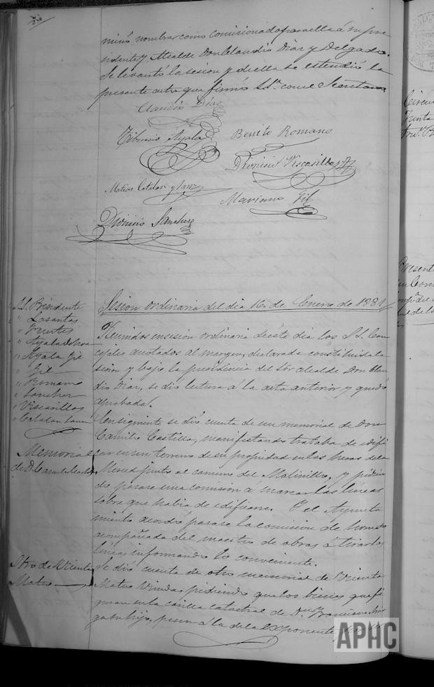 Solicitud de Camilo Castilla, para edificar en las eras de la Merced, junto al camino del Molinillo. Se acuerda pase a la Comisión de Ornato. Presentación de un Comisionado sobre la construcción de un ferrocarril de los Alduides (De Madrid a Francia, por Castejón, Sangüesa y Valle de Roncal).