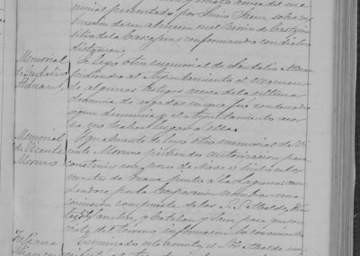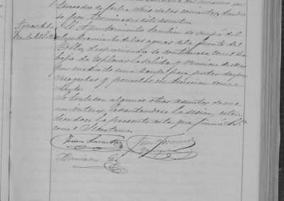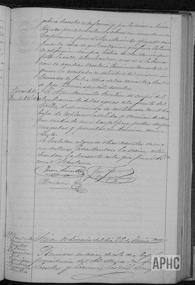 Solicitud de Lucio Sáenz, sobre construcción de almacén en el Barrio de Castejón, sitio de la Cascajera. Solicitud de Vicente Moreno, para construcción de un pozo de nieve o hielo en los montes de Guarre, junto a la Laguna; se nombra una Comisión para su estudio. Informe del Sr. Alcalde sobre no poder conseguir la contratación de suministro de nieve o hielo, desde fuera de la Ciudad, había contratado con Juliana Aliaga, comprometiéndose a dicho suministro a los enfermos, previa receta facultativa, a un precio acordado, encontrando conforme la Corporación dicha contratación. (Hay una nota que se lee “A nombre de Juliana Aliaga, firmo ………, Martín Ausejo”)