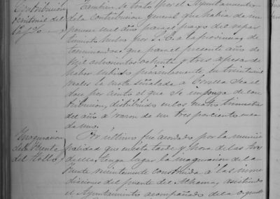 Solicitud de Matías Delgado Álvarez, para extraer piedra de cantera de las Foyas, autorizándose por término de dos meses. Se acuerda la inauguración a las tres de la tarde de la recientemente construida Fuente en las inmediaciones del puente sobre el río Alhama, asistiendo la corporación y la orquesta de música, (se denominaría Fuente del Buen Deseo, que se abastece de la Fuente del Tollo).