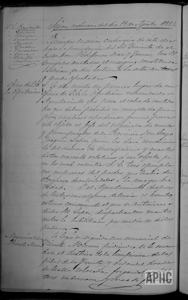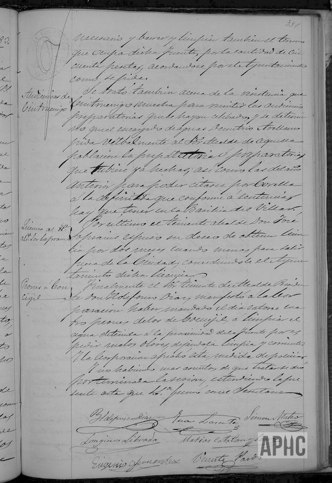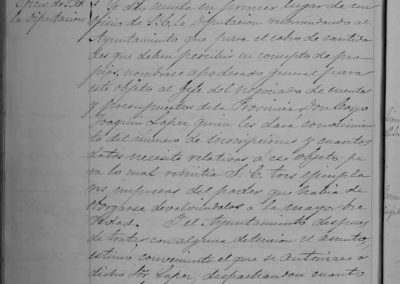 Solicitud de Vicente Moreno para que se le encomiende la limpieza de las pilas de la nueva Fuente (Del Buen Deseo) y el redondel donde está colocada, fregándola dos veces por semana y más si fuese necesario y barrer y limpiar también el terreno que ocupa dicha Fuente, por la cantidad de 50 pesetas (supongo serán anuales); se concede como se pide. El Ayuntamiento de Cintruénigo se resiste a enviar cierta documentación, determinándose que el encargado de aguas Demetrio Arellano, pida verbalmente al Alcalde dicha documentación. Se autoriza al Tte. de alcalde José Sopranis licencia para ausentarse por dos meses.