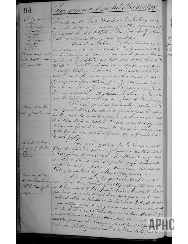 A instancia de la Junta de Beneficencia, se incremento el sueldo a los practicantes que prestan servicio en el Santo Hospital, con la obligación de asistir diariamente al Centro. A instancia de la Junta de Escuelas, se conceden locales al Maestro sustituto Justo González Mendarte.