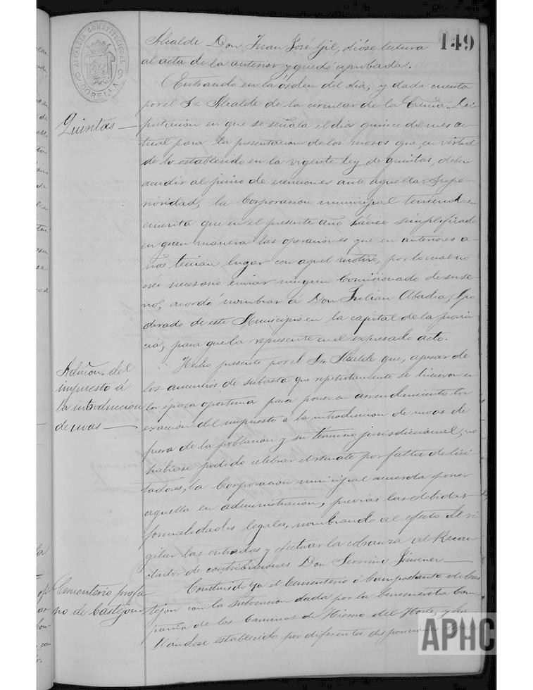 Construido el Cementerio de Castejón, con la subvención de la Compañía de los Caminos de Hierro del Norte, se encarga al maestro de obras para que proceda a la construcción de un apartado para cementerio profano, para quienes fallecen fuera de la Religión Católica. Abono a Pedro Gómez por una entrega de petróleo.