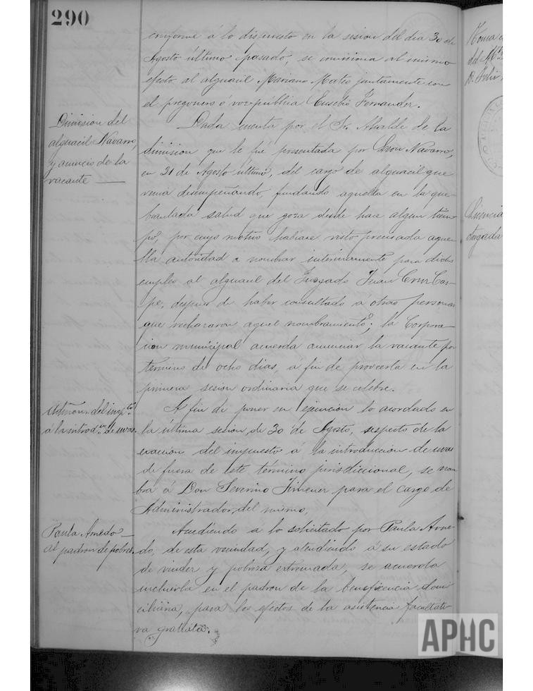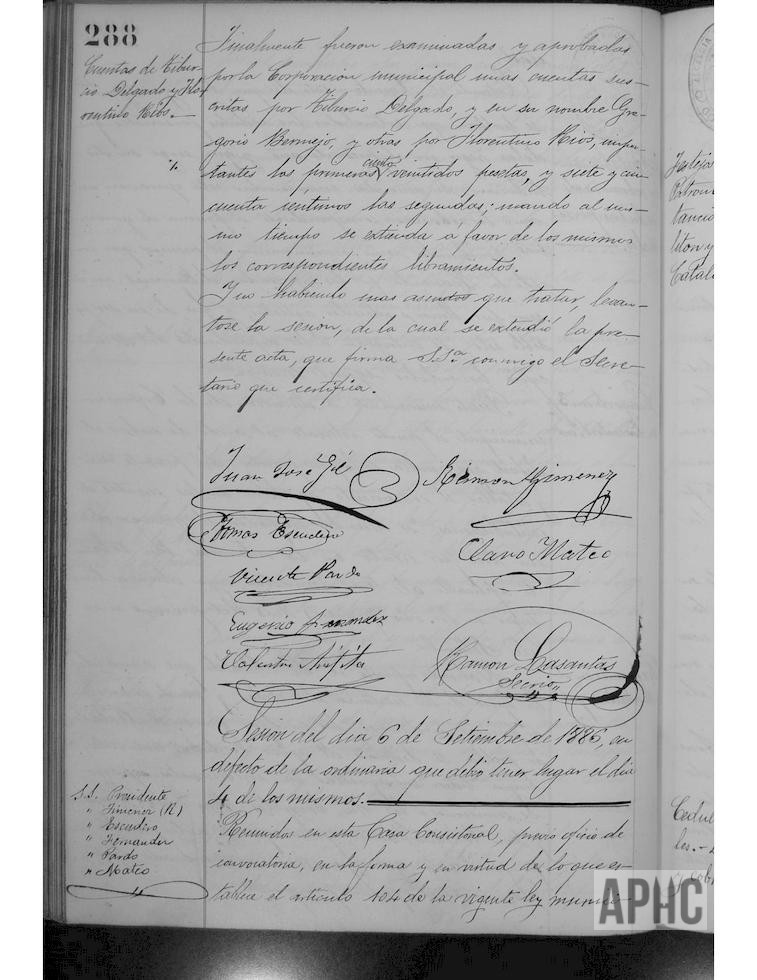 1886-09-06 – (Dimisión alguacil. Toma posesión nuevo Maestro).