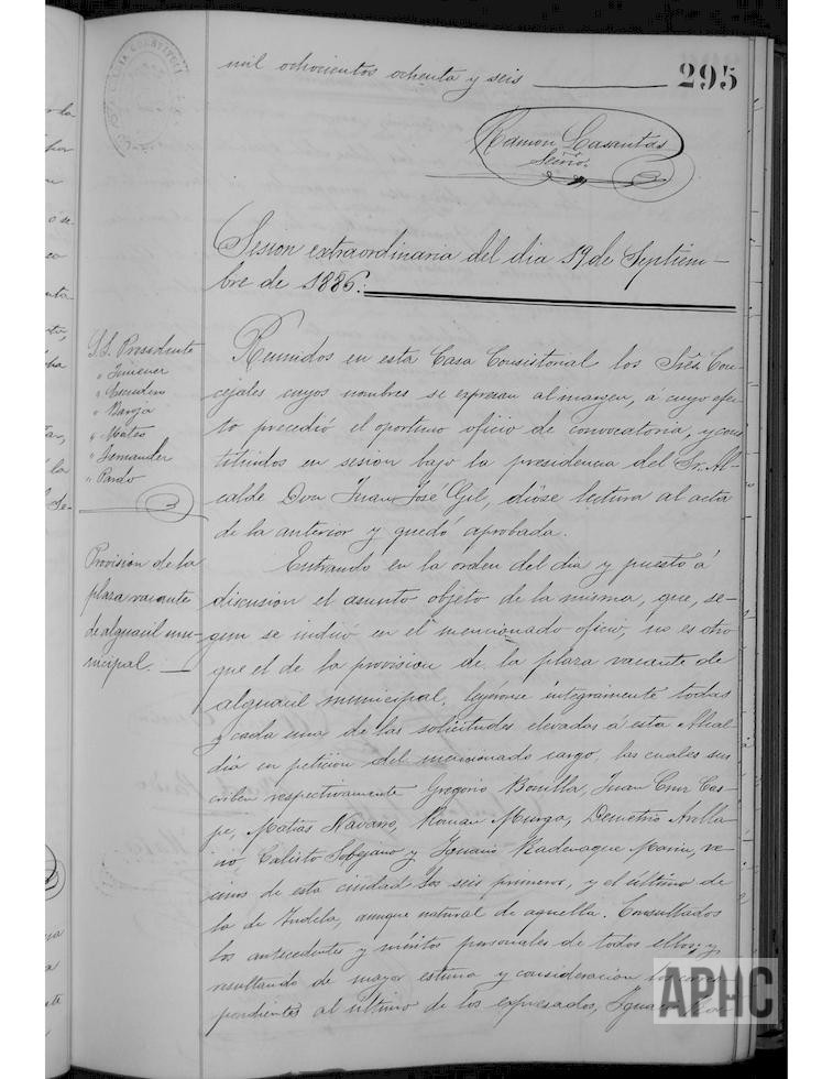 Instancias presentadas para el cargo de alguacil que está vacante: Gregorio Bonilla, Juan Cruz Caspe, Matías Navarro, Román Murga, Demetrio Arellano y Calisto Sobejano, vecinos de este Municipio e Ignacio Radenaque Marín, de Tudela, se acordó nombrar para dicho cargo de Alguacil a Ignacio Radenaque Marín.