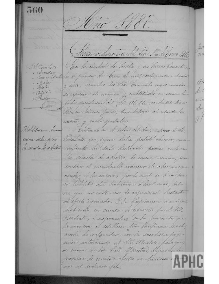1887-01-01 – (Ayuntamiento. Alcalde, Juan José Gil; Concejales Ramón Jiménez, Tomás Escudero, Vicente Pardo, Isidoro Sesma, Valentín Arigita, Juan Ayala y Claro Mateo).