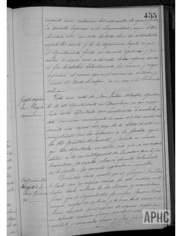 Destitución del cargo de Alguacil a Ignacio Radenague, por incumplimiento manifiesto de sus deberes y mal comportamiento público. Abono de gastos a Manuel Sánchez, por fuegos artificiales. Existe una cerrajería de Viuda de Manuel Marcilla.
