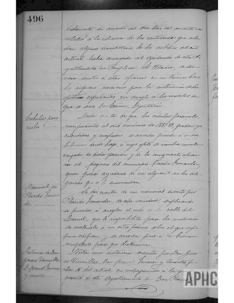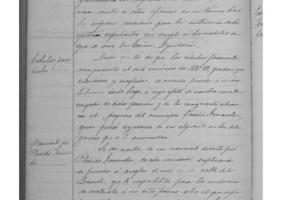 Solicitud de Plácido Fernández, para que se arregle un vado en la calle Laurel. Solicitud de Jenaro Viscasillas, Manuel Jiménez y varios para no desenlosar la calle la Rúa y no abrirla al libre tráfico.
