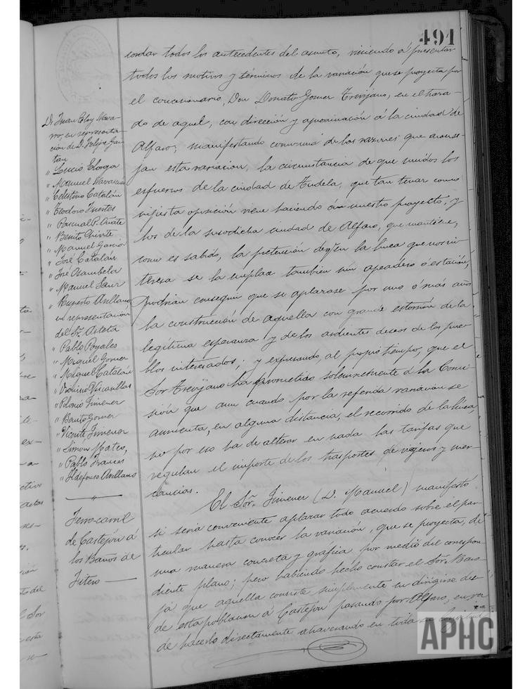 Reunidos Ayuntamiento, Veintena y Mayores Contribuyentes, se aprobó el nuevo proyecto del Ferrocarril de Castejón a Baños de Fitero, con la variación del trazado por Alfaro.