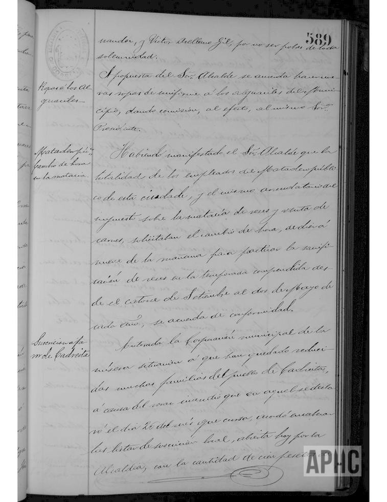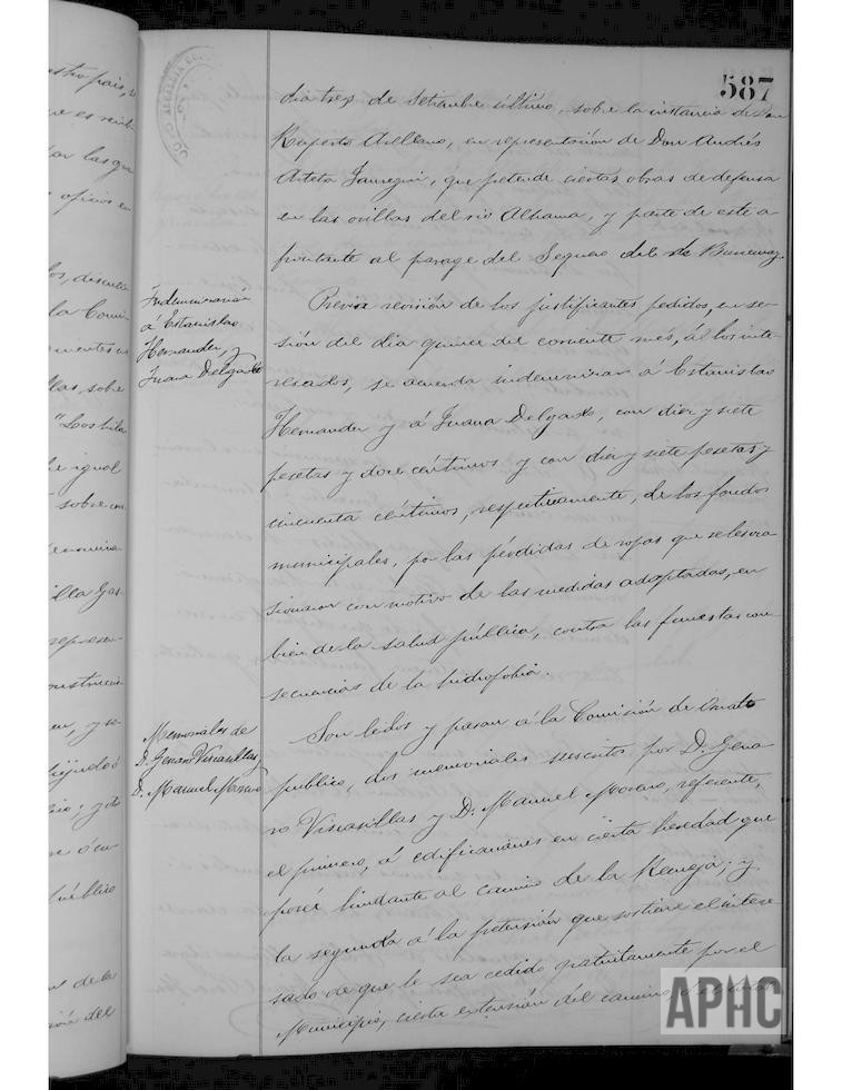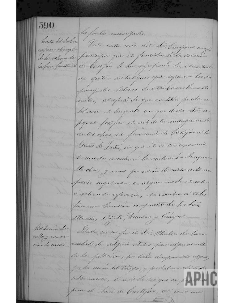 Aprobación de varios informes: De Jenaro Viscasillas, para edificación en los “Hiladores”; de Plácido Fernández, igual en la calle Laurel; otra de Juan Marcilla Gascón, sobre cueva en el “Molinillo”; otro de Tomás García en representación de Francisco Goñi, sobre edificación en calle del Carmen y otra de Ignacia García, sobre cubrimiento del lavadero público en su lado Norte y Oeste. Aprobación dictamen sobre solicitud de Ruperto Arellano, en representación de Andrés Arteta Jáuregui, para obras de defensa del río Alhama, en tierras de su propiedad en el paraje del Sequero, en el término de Burcemay. Se concede indemnización a Estanislao Hernández y su esposa Juana Delgado, por la pérdida de ropas que Juana desechó, con motivo de socorrer el niño Benito Mellado, que fue mordido por un perro rabioso. Solicitud de Jenaro Viscasillas sobre edificación en propiedad lindante con el camino de la Recueja y otra de Manuel Moreno, solicitando cesión gratuita de parte del camino que conduce el molino del puente, para unirlo al local de la fábrica de aguardientes y tártaros, que posee junto al mismo. Se acuerda dotar de nuevas ropas de uniforme a los Alguaciles. Se aprueba cambio de hora de matanzas en el Matadero público. Se acuerda abrir suscripción local a favor de los vecinos de la localidad de Cadreita, por los daños causados por un voraz incendio el pasado día 26. Se acuerda la compra de rótulos para diversas calles y números, para nuevas calles y las nuevas del barrio de Castejón. Multa de 25 pesetas a los Serenos Lucas Gil y Laureano Salcedo, que presentan su dimisión y se nombra provisionalmente a Jerónimo Navarro y Facundo López Delgado.