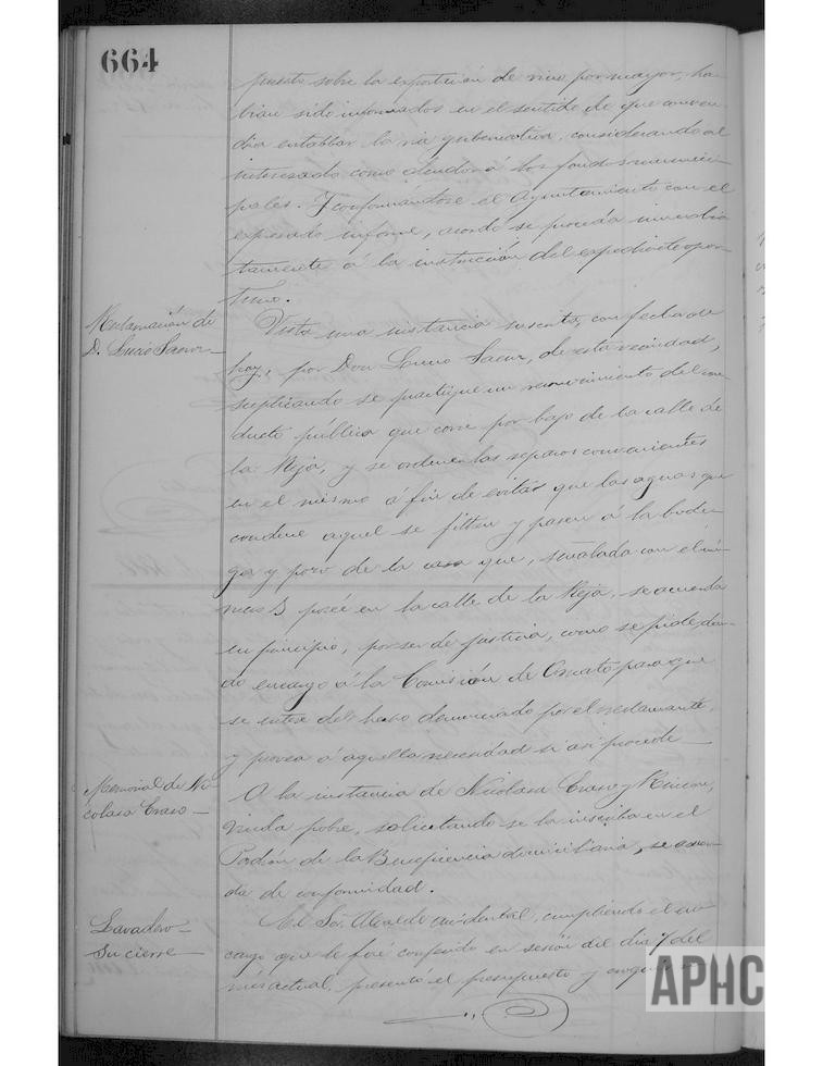 Se acuerda expediente gubernativo contra Manuel Barenas, como deudor del impuesto del garapito del que era rematante, por entender que la deuda la tiene contraída con la Diputación. Solicitud de Lucio Sánchez, sobre reparación de conducción pública de aguas, para evitar filtraciones ocurridas en su bodega de la calle la Reja, 1. Autorizando subasta para las obras de colocación de techumbre y cierre en el lavadero público. Escrito de Jerónimo Marco, alcalde del barrio de Castejón, denunciando que Pedro González, vecino de dicho barrio, ha labrado terreno dedicado a calle pública.