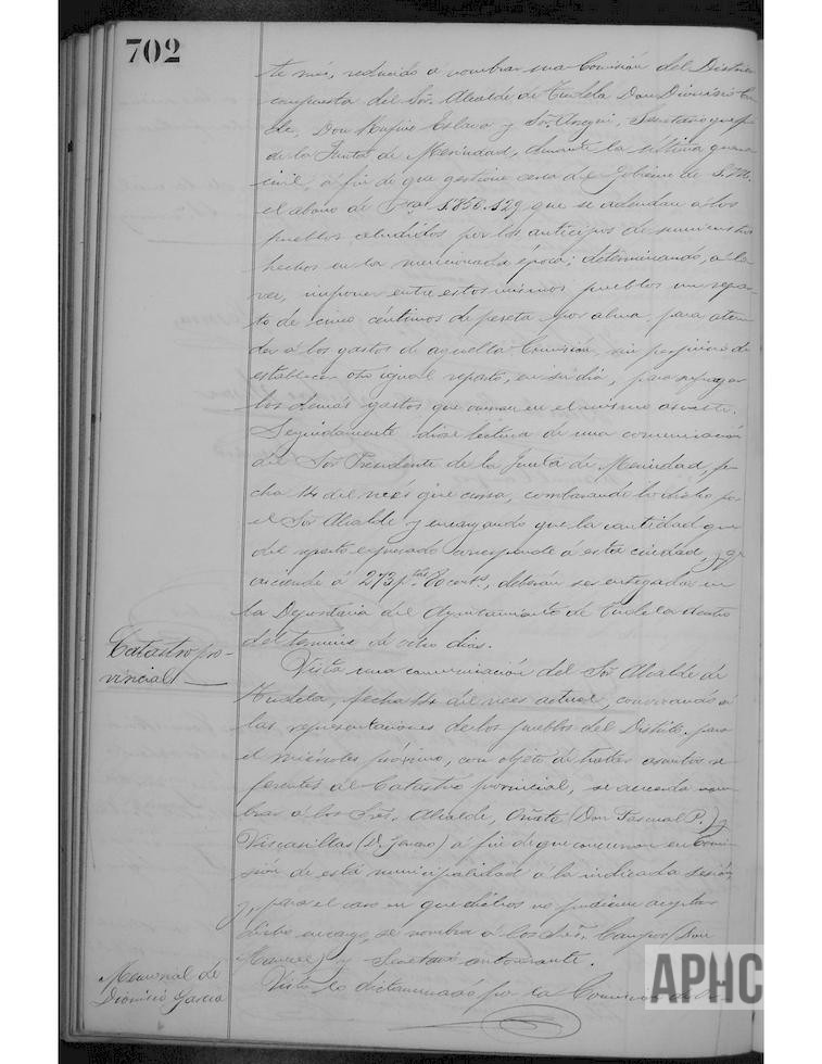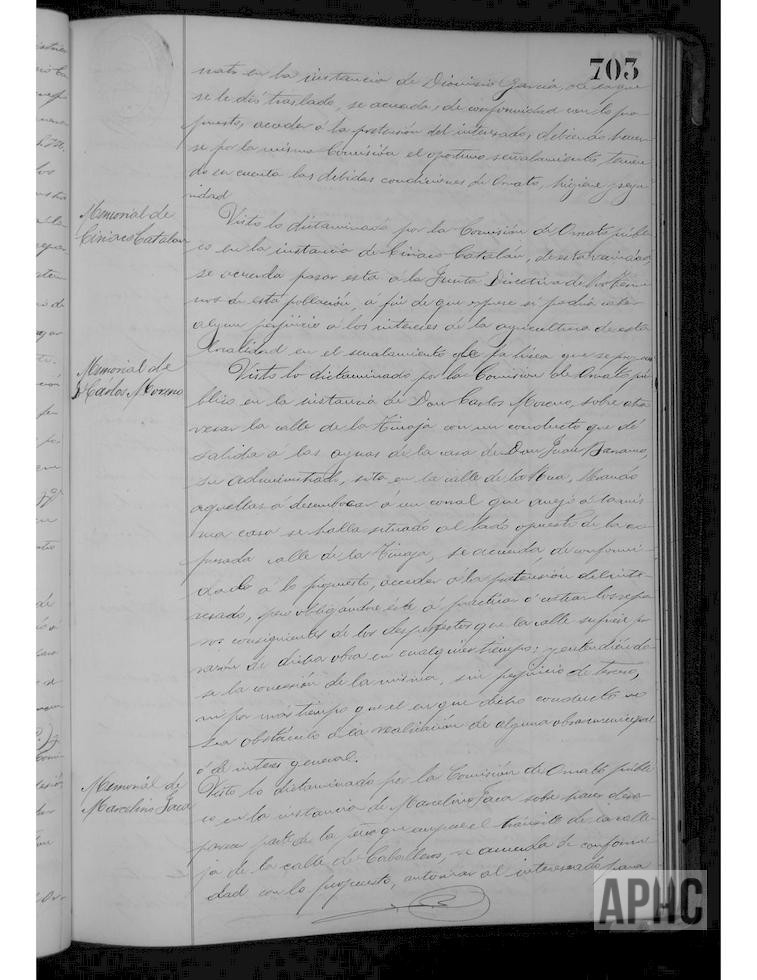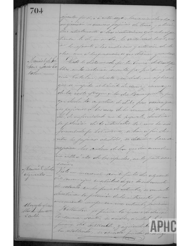 Es Alcalde de Tudela, Dionisio Conde. Se autoriza a Carlos Moreno, a instalar un conducto en la calle de la Tinaja, para dar salida a las aguas de la casa de su administrado Juan Basiano, en la calle la Rúa, hasta un corral de la misma casa pero situado en la calle de la Tinaja, indicándole que deberá restaurar los daños que pueda causar en dicha calle. Se autoriza a Marcelino Jaca, a eliminar una parte de una peña que impide el tránsito en la calleja de la calle Caballeros, según las instrucciones que reciba de la autoridad. Solicitud de José Sanz y Javier Catalán, para que se impida el tránsito de carros y carruajes de la calle Mayor a la del Barranquillo, por la angostura de dicho paso y los graves perjuicios a las casa de los recurrentes. Se desestima, pero se ordena quitar los andenes de losa que dan acceso de una calle a otra. Se desestima solicitud de los dos Alguaciles, para que se les conceda calzado. Ante la proximidad de Semana Santa, se acuerda el arreglo de las calles que ha de recorrer la procesión de Viernes Santo. Nombramiento de Sereno a favor de Gregorio Bonilla. Abono cuenta de Mariano Villuendas, por suministro de efectos para alumbrado público.
