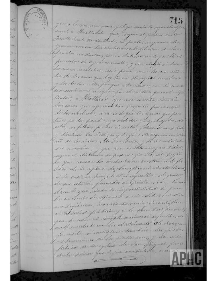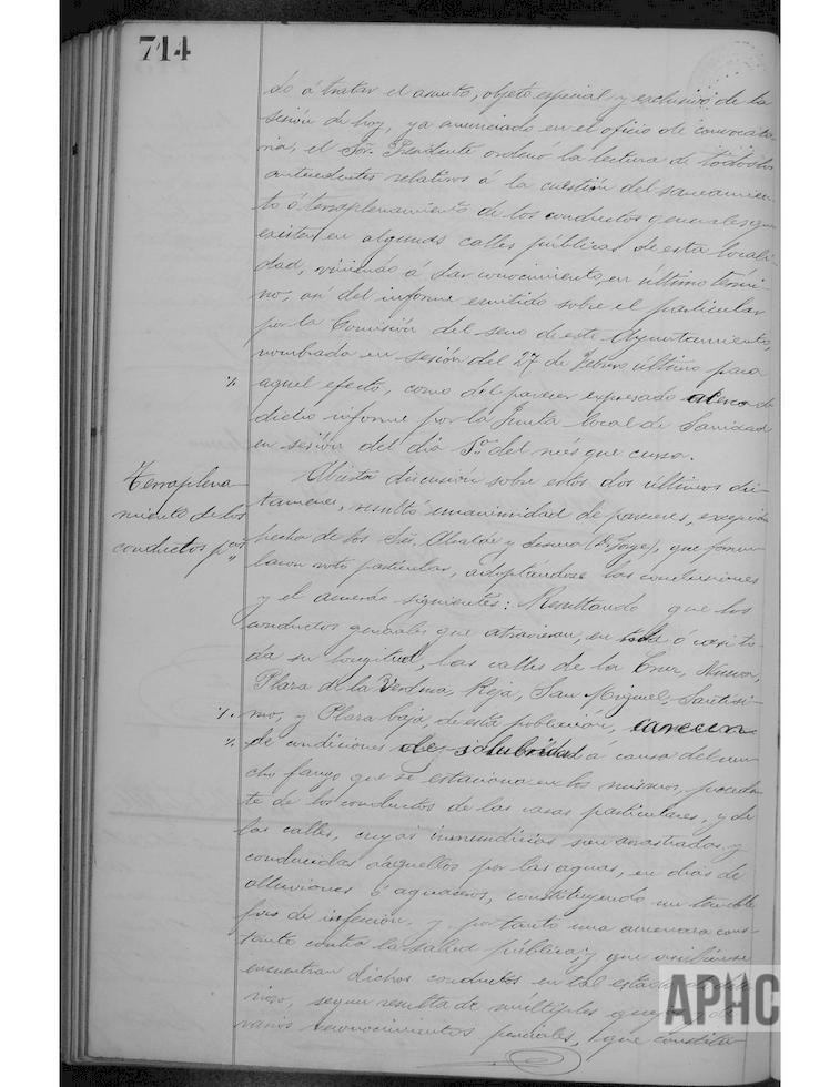 Informe y discusión sobre el estado de conductos de aguas residuales públicos de las calles en cuanto a la salubridad de los vecinos y las dificultades para las soluciones que se consideran apropiadas; después de varias propuestas y discusiones, se acuerda convocar a la Junta de Veintena, para informar sobre la realización de las obras oportunas conducentes a su saneamiento o “terraplenamiento”, según proceda y aprobación de un presupuesto adicional, para financiar dichas obras. (Las conducciones de aguas residuales, era precarias y no contaban con buenos desagües, causando continuas quejas en cuanto a la salubridad tanto por los desperdicios como por las inmundicias que en los mismos se depositaban. Se habría de tardar unos cuantos años en dar solución a estos problemas en las ciudades y dotarlas de buenos alcantarillados).