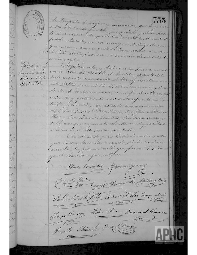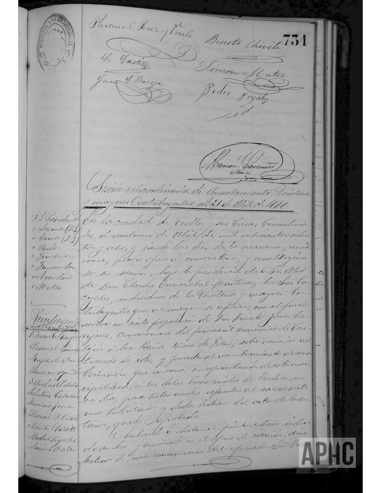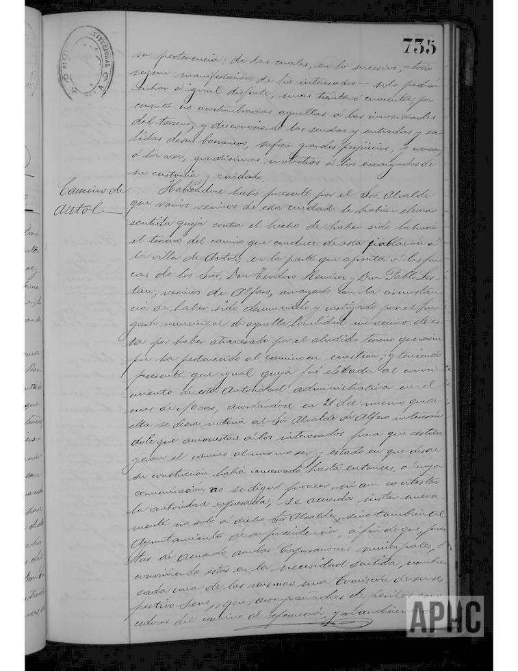 Reunidos Ayuntamiento, Veintena y Mayores Contribuyentes, en sesión extraordinaria, se trata informe sobre variación de proyecto del ferrocarril de Castejón a los Baños de Fitero, pasando por término de Alfaro. En sesión ordinaria, sólo de Ayuntamiento, se trataron los siguientes asuntos: Reclamación al Ayuntamiento de Alfaro, por haber labrado dos vecinos de esa localidad el camino de Autol. Abono cuenta a Pantaleón Gil, por trabajos de carpintería. Se modifica la hora de las sesiones ordinarias, pasando de las 6 de la tarde a las 10 de la mañana, las sesiones de los sábados, y que así se publique.