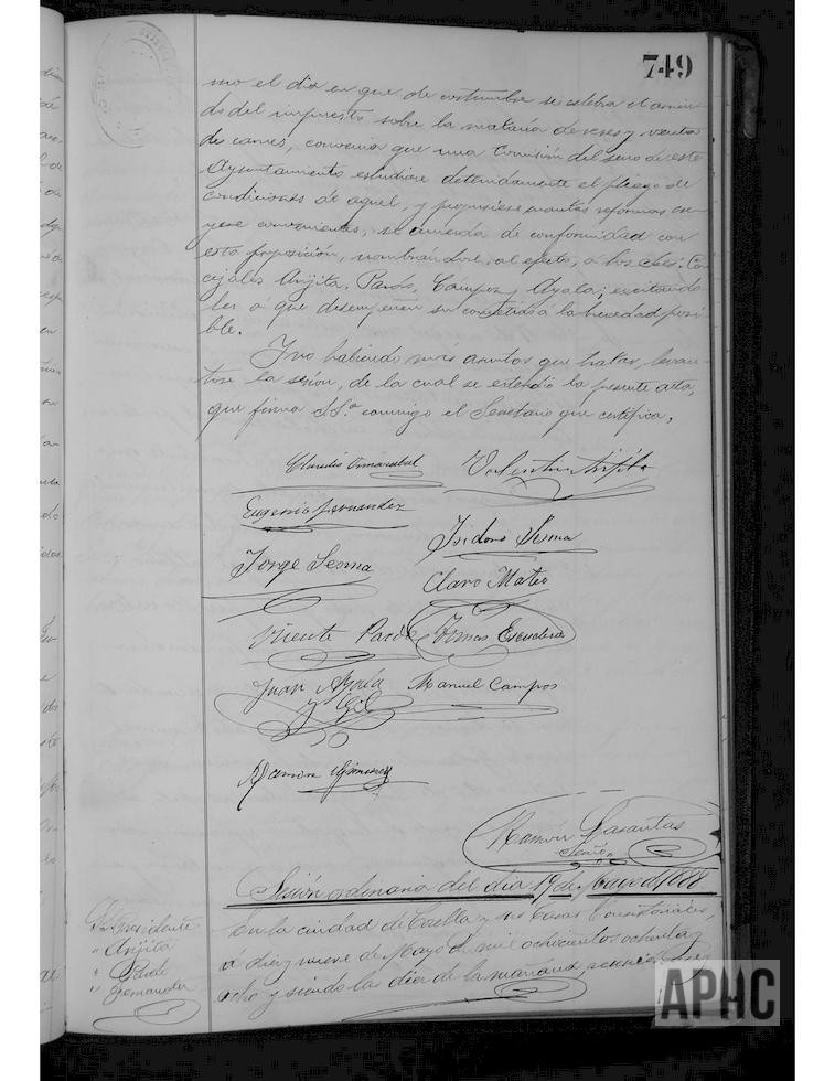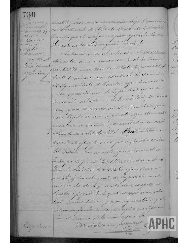 Con relación al asunto del Catastro Provincial, se informa de la dimisión en pleno del Ayuntamiento de Tudela, según lo convenido por las representaciones de los pueblos del Distrito, se considera que ha llegado el momento a este Municipio de presentar la dimisión de todos sus Concejales, elevando dicha dimisión al Gobernador Civil de la Provincia, siguiendo el ejemplo de la Corporación del Ayuntamiento cabeza de Distrito. Solicitud de Cruz Díez de Artázcoz, para que se establezca un impuesto a la venta ambulante que se realice en este Municipio, por personas ajenas al mismo. Se autoriza a Pablo Gómara, Celador de Caminos, la extracción de piedra de la rampa del Paseo de la Rambla, para las obras de refuerzo del puente del Alhama. Solicitud de Domingo Cornago, para ampliación del plazo para continuar la extracción de piedra de la cantera de Navacaveros, se concede prorroga por un máximo de dos meses. Requerimiento del Juez del Distrito, sobre que se informe de la pertenencia de unos bolos o columnas que estaban en la puerta principal de la iglesia de San Miguel; se acuerda manifestar que se ignora la pertenencia de dichos bolos y que este Ayuntamiento no ha tomado acuerdo alguno respecto al arranque de dichos bolos. Abono de cuenta de Ramón Garbayo, por coser o encuadernar las hojas del Censo de Población.