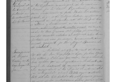 Convocatoria del Presidente de Bardenas, para reunión. Resolución de la Diputación sobre reclamación del rematante del impuesto de garapito, Miguel Barenas, confirmado resolución de este Ayuntamiento. Se trata sobre asunto de inscripción de Propios. Comunicación a Raimundo Virto sobre edificación en calle Fitero, autorizando su proyecto e indicándole se ajuste a la línea de los edificios contiguos de Francisco Goñi, respecto a la fachada a la calle Fitero y en cuanto a la prolongación de la calle Cañete al edificio de Sr. Goñi y Matilde Lasqueti, tasándose el terreno que renuncia a favor del Ayuntamiento, para su abono correspondiente. Solicitud de Francisco Goñi, para edificar en calle Fitero y corral denominada de la “Parada”, se le fijan las mismas líneas de edificación que al proyecto de Raimundo Virto. Se acuerda el arreglo del vadillo de la Calle Fitero y de muro de contención de la calle San José en la parte del “Crucifijo”. Se acuerda el blanqueo de las habitaciones del cuartel de la Guardia Civil y unas obras para evitar humedades. Se abona cuenta de Gregorio Delgado por efectos consumidos en el alumbrado público. Se abona cuenta de Benito Díaz, Conserje del Ayuntamiento por braseros suministrados a las oficinas municipales el último invierno, indicándole debe presentar los justificantes que tuviere al respecto.