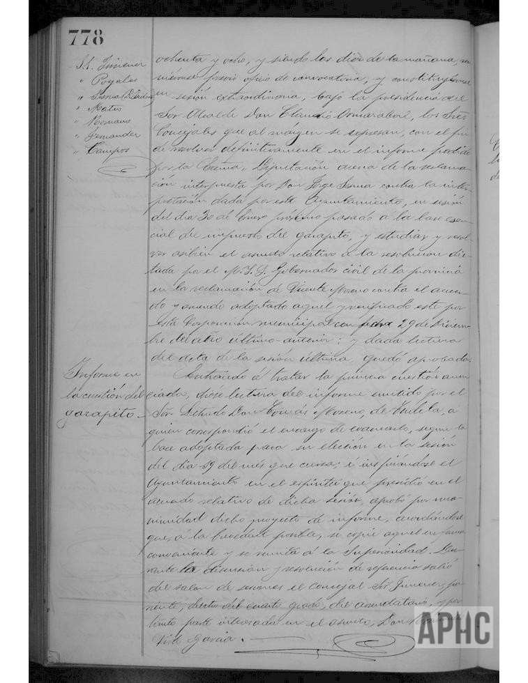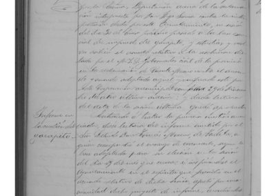 Informe sobre la cuestión del impuesto de garapito. Instancia de Lucio Moreno, arrendatario del abasto de nieve, manifestando que si el Ayuntamiento no recurre la resolución del Gobernador civil, en la que se estima el derecho de Vicente Moreno Aliaga, para ejercer la libre venta de nieve o hielo, será Lucio Moreno quien a título personal recurrirá dicha resolución y solicita se prohíba a Vicente Moreno y a cualquier otro vecino la venta de nieve, en tanto no finalice el arrendamiento que tiene con este Ayuntamiento. Acordándose que la resolución del Gobernador Civil debe considerarse con toda la fuerza de cosa juzgada, aunque contra la misma quepa recurso de alzada y desestimar la solicitud de Lucio Moreno y permitir a Vicente Moreno Aliaga y a cualquier otro vecino la venta del expresado artículo. Entrando en discusión y lo avanzado de la hora quede al asunto para una nueva deliberación.