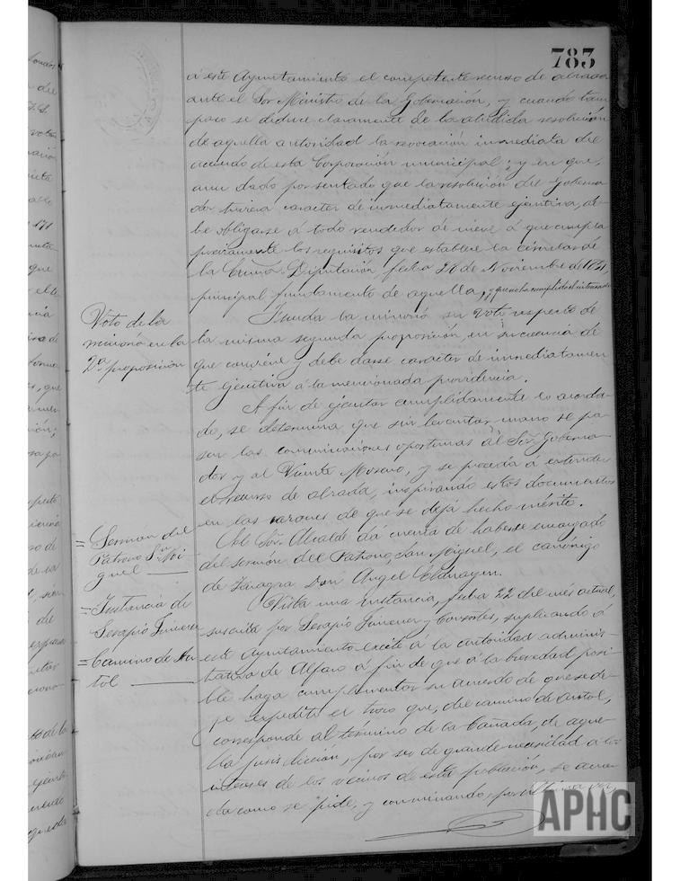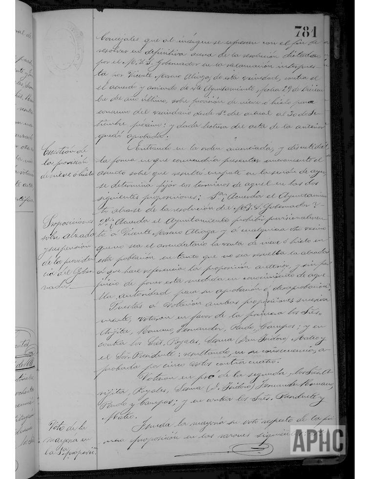 Sometido a votación el asunto del arriendo del abasto de nieve, se acuerda recurrir en alzada la resolución del Gobernador Civil y entretanto no se resuelva prohibir a Vicente Moreno Aliaga o a cualquier otro vecino la venta libre de nieve o hielo. Solicitud de Serapio Jiménez y otros para que se requiera al Ayuntamiento de Alfaro, la reparación del camino de Autol, en el término de la Cañada. Escrito de José Catalán, Francisca Gil y varios sobre adopción de medidas en cuanto al abuso de depósitos de materias inflamables dentro de la población. Ofrecimiento de Hijos de Insausti, de Logroño, para contrata de fuegos artificiales.