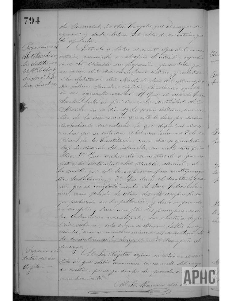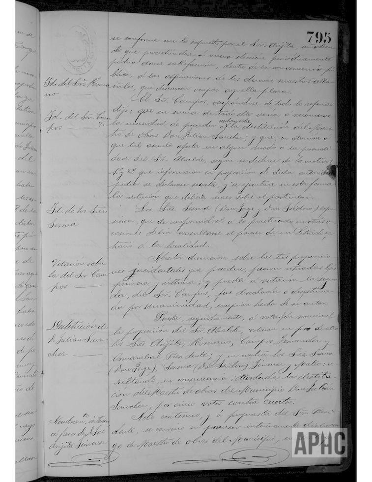 Se acuerda la destitución del Maestro de Obras Julián Sánchez Arigita, por los motivos que se exponen, manifestando el propio interesado que debía anunciarse la vacante. Nombramiento de Maestro de Obras interino a José Arigita Jiménez, por votación. Se acuerda anunciar la vacante de Maestro de Obras Municipal.